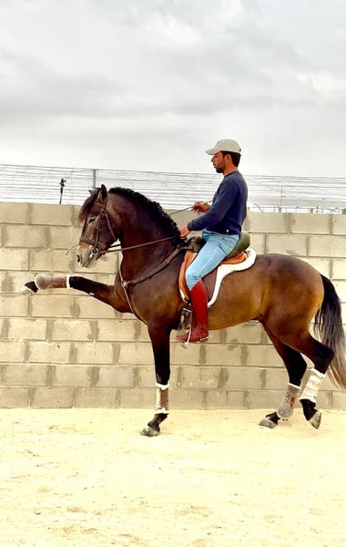 Dieser junge Hengst verzaubert mit seinem liebevollen Charakter. Er ist immer motiviert und kennt bereits Piaffe, spanischer Schritt, das Kompliment (klassisch & portugiesisch) und Sitzen. Sein menschenbezogenes Wesen macht das Training leicht und spielerisch. Im Gelände und Strassenverkehr ist er ebenfalls sehr zuverlässig. Röntgenbilder liegen vor und können eingesehen werden. Näher Informationen gerne unter WhatsApp 0175 861 45 35
