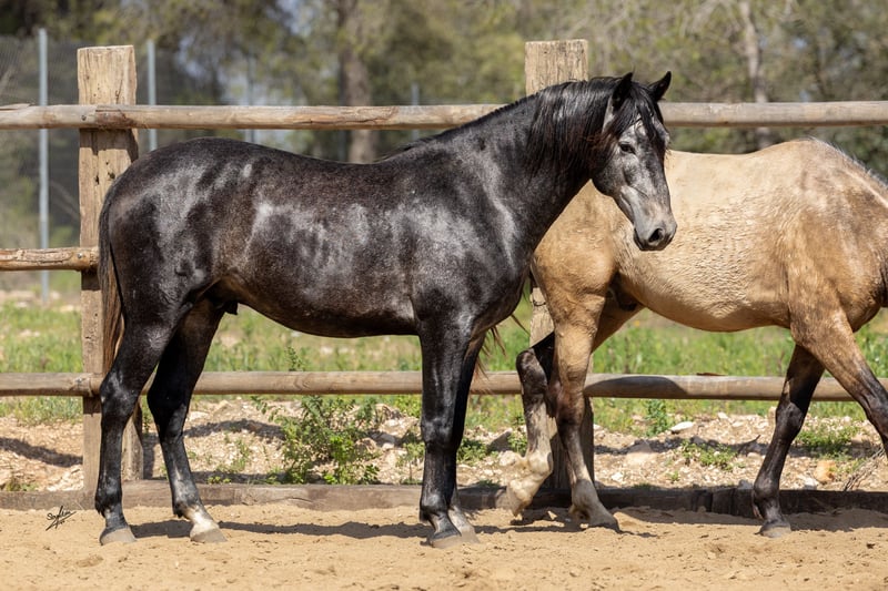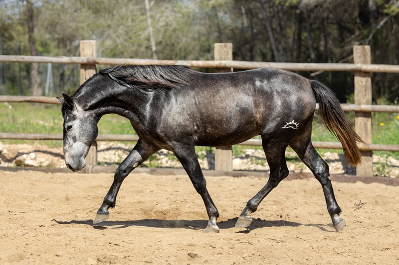 Este hermoso potro joven de estilo barroco busca un hogar. Ha crecido en libertad en manada y proviene de una cría cuidadosa y amorosa. Posee excelentes movimientos básicos y un carácter excepcional, muy confiado y cercano a las personas. Actualmente, ya se le está iniciando en la monta con delicadeza y se trabaja con él desde el suelo. Conoce el trabajo en el picadero, la entrega de cascos y también es tranquilo en el remolque. Se estima que alcanzará una altura de aproximadamente 1,64 m. Las radiografías están disponibles y no muestran ninguna anomalía. Para más información, no dude en contactarnos: +49 171 528 48 65.