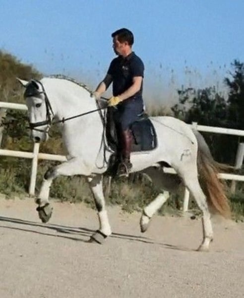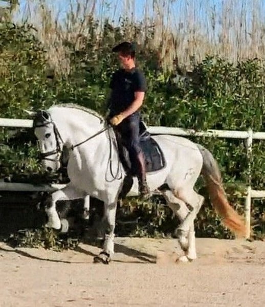 Dieser elegante und wunderschöne Apfelschimmel-hengst, möchte gern in sein FOR EVER HOME vermittelt werden 🏡 Ein vielversprechender Bewegungskünstler überzeugt durch sein harmonisches Erscheinungsbild, seinen sehr guten Grundqualitäten und seinem beeindruckendem Gangwerk. Er hat Charakter und ist sehr arbeitswillig mit angenehmen Go. Auch reagiert er auf feine Hilfen und ist somit für Reiter und ambitionierte Dressurreiter mit Erfahrung ein idealer Partner, die Wert auf Qualität und Leistungsbereitschaft legen. Er ist sehr gut geritten und zeigt eine solide Basis für die weitere Ausbildung im Dressursport, und ist,bei entsprechender Förderung, der zukünftige Stern im Viereck. Er hat sehr viel Potential und die richtige Einstellung zur Arbeit. Et ist ein vielversprechendes Nachwuchspferd für den gehobenen Dressurbereich, das sowohl durch seine Abstammung als auch durch seine herausragendes Qualität überzeugt. Sein zuverlässiges Temperament lässt keinerlei Wünsche offen. Im Gelände ist er absolut cool und nicht schreckhafz, und es spielt keine Rolle, ob alleine oder in der Gruppe. Mit dem richtigen Reiter und einem top Trainer,wird er die Konkurrenz im Viereck bald hinter sich lassen. Er ist die perfekte Wahl für den anspruchsvollen Reiter/in, und deckt sehr gut ab. Wer ein ganggewaltiges und qualitätsvolles Nachwuchspferd sucht, meldet sich bitte mit Telefonnummer, damit ich schnellstmöglich Kontakt zu Euch aufnehmen kann. Standort Spanien Nähe Sevilla. Wir haben eine große Auswahl an verschiedenen Pferden - vom Fohlen bis zum Gran Prix Pferd 🐎🐴 hu