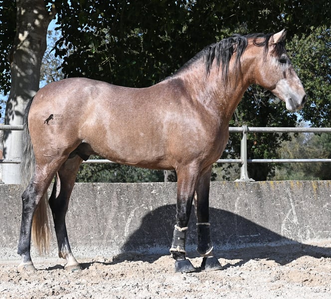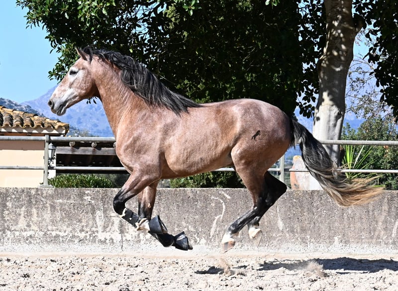Dieser 2022 geborene, reinrassige PRE Hengst (Andalusier mit Rassenachweis der ANCCE), ist ein ganz besonderes Juwel. Ein königlicher Spanier wie aus dem Bilderbuch, der nur so vor Eleganz, Sanftmut, Lebensfreude und Klasse strahlt. Sein sehr barockes Exterieur, zusammen mit seinem weichen Blick und seinem feinen Kopf, lassen an seiner spanischen Reinheit nicht zweifeln. Kenner des PRE werden beim Anblick seiner Abstammung auch leuchtende Augen bekommen! Der schöne Jüngling ist ein Enkel von FER BAGO von FERRERO (Vater des mehrfachen Weltmeister Fer Bonachon de Eda) und diese Pferde stehen für spanisches Feuer, dass in perfekter Harmonie mit ihrem menschenfreundlichen Charakter gemischt wird. Mütterlicherseits ist er BOHORQUEZ gezogen- barocke Pferde, die klar im Kopf sind und sehr arbeitssam und vielseitig sind. Und diese hervorragende Abstammung, spiegelt sich in diesem Hengst wider- er ist ganz sanft, liebevoll und arbeitssam. Gleichzeitig versprüht er nur so Lebensfreude, die einen direkt ansteckt und so ein Pferd, macht einfach glücklich. Im Umgang ist er ein absoluter Gentleman und könnte sich nicht besser benehmen! Obwohl er noch nicht lange unterm Sattel ist (Winter 2025), muss er vorm Reiten nicht einmal ablongiert werden, weil er so artig ist, dass man direkt loslegen kann. Unterm Sattel ist er genauso ein Gentleman wie im Umgang, tut keinen falschen Schritt und will alles richtig machen. Trotz seines jungen Alters und kurzen Zeit unter dem Reiter, kristallisiert sich schon heraus, er wird ein richtiges Verlasspferd! Mit aktuell 165cm hat er schon eine stolze Größe. Bei dem Züchter leben die Junghengste lang in der Herde und werden langsam und schonend angeritten (doppelt gebrochene Wassertrense). Man merkt auch sofort in seiner Klarheit und Ruhe, dass wirklich alles richtig gemacht wurde in der Aufzucht und wie er gearbeitet/behandelt wird. Er ist gekört, hat aber noch nicht gedeckt. Seine Bewegungen haben Dressurpotenzial und er ist sehr leichtfüßig und biegsam, was bei so barocken Exemplaren, nicht selbstverständlich ist ;) Dass die robuste Aufzucht auch gesund war, wird durch seine Röntgen bestätigt, die alle Klasse 1 sind (Dezember 2025) und selbstverständlich gerne zur Verfügung gestellt werden. Es besteht die Möglichkeit, dass er vor Ort kastriert wird, für alle, die keine Hengste halten können. Der weitere Beritt vor Ort wird auch angeboten. Ein wahres Traumpferd mit gutem Charakter, aus bestem Hause und höchster Qualität. Preis der Qualität entsprechend sehr fair! Sein Standort ist Mallorca. Videos und Abstammung gerne auf Anfrage. Gerne organisiere ich vor Ort eine AKU, Beritt, Kastration, Transport oder auch ihre Reise, sollten Sie persönlich zum Anschauen kommen. Details dazu gerne auf meiner Seite oder im Gespräch. Saludos aus Spanien