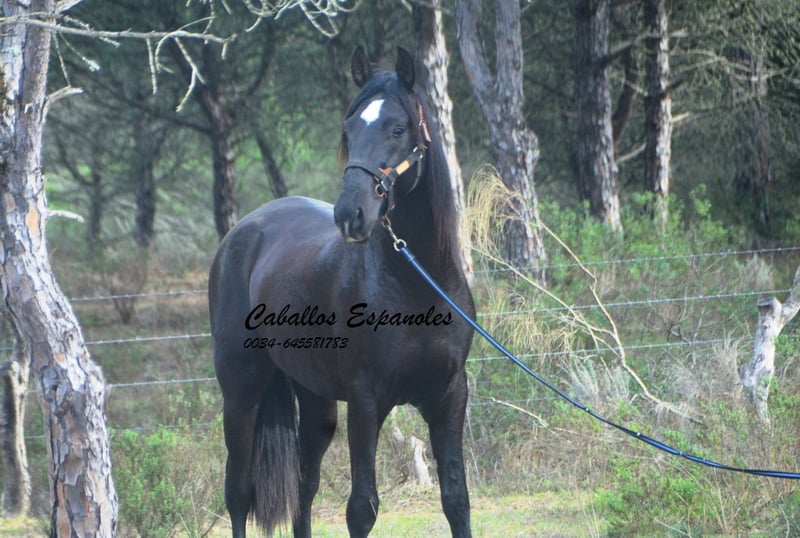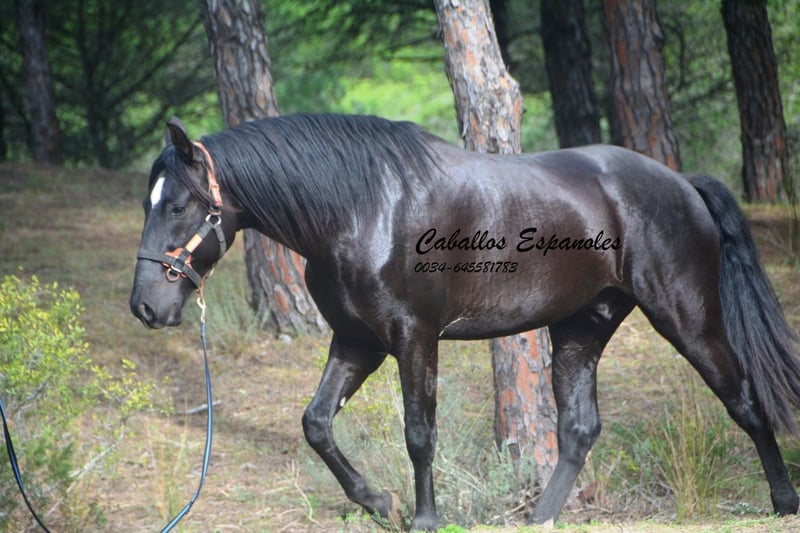 Este semental PRE de gran tamaño tiene una estructura correcta y armoniosa. Siempre asoma su estrella blanca debajo de su pony. En el manejo, es muy tranquilo. Cuando lo sacamos de la caja, pasó sin problema junto a una yegua atada. El semental es muy sociable y le encanta que le acaricien. Siempre está atento y escucha bien. Está en trabajo de longe y conoce la silla de montar, manteniéndose muy relajado. Este joven caballero cuenta con tres excelentes movimientos básicos. Tiene un paso excepcional y un trote muy equilibrado, con buen impulso hacia arriba. Un caballo fantástico para la doma y para la Working Equitation. El caballo se vende en nombre del propietario. Puede permanecer en nuestro establo para su entrenamiento adicional. Se organizará una evaluación clínica en breve. Transporte internacional disponible.