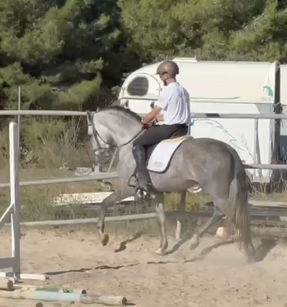 Caballo PRE de 3 años, dócil y de buen carácter – Versátil y talentoso Este hermoso caballo PRE (Pura Raza Española) de 3 años es tranquilo, de carácter equilibrado y perfecto para jinetes de todos los niveles. Combina elegancia, atletismo y un carácter calmado y cooperativo. Ya está bien adiestrado bajo la silla y demuestra una habilidad excepcional para saltar, una cualidad poco común en un caballo español de su edad. Es apto para diversas disciplinas, lo que lo convierte en un compañero verdaderamente versátil. * Edad y entrenamiento: Solo tiene 3 años, es bien educado, tranquilo, honesto y correctamente adiestrado bajo la jineta. Salta con seguridad y confianza en exteriores. * Temperamento: Valiente, dócil y cooperativo, ideal para jinetes que buscan un caballo confiable y de confianza. * Versatilidad: Perfecto tanto para deporte (saltos, doma) como para ocio y paseo. * Salud: Disponibles radiografías completas y limpias de junio de 2025. Se aceptan inspecciones veterinarias. Negativo a piroplasmosis (PIRO free). * Opciones: Puede ser castrado si se desea. Se puede organizar transporte internacional. Una oportunidad única para adquirir un joven PRE talentoso, con conformación correcta y un carácter calmado y cooperativo. Ideal para jinetes que buscan un caballo prometedor para deporte, reproducción o ocio. Para más información o consultas, por favor contáctenos.