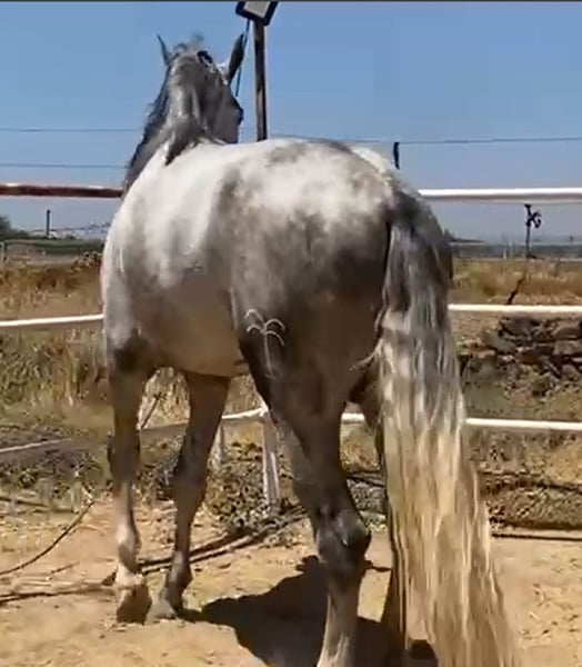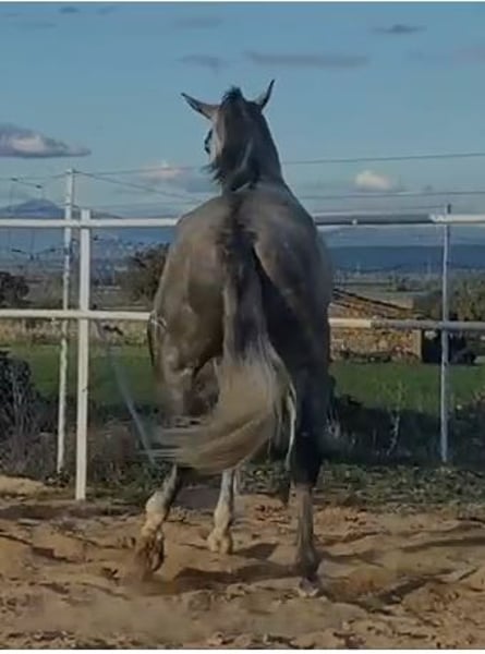 ZUM VERKAUF STEHT EIN GRAUER HENGST, DER FÜR MORPHOFUNKTIONALE TURNIERE VORBEREITET IST, PRE. Er hat eine sehr gute Morphologie und spektakuläre Bewegungen, ist 1,75 m groß und 3 Jahre alt, mit viel Noblesse und Schönheit, und hat viel Rasse. Es handelt sich um ein komplettes Pferd, das eingeritten und bereit ist, an morphologischen PRE-Turnieren der ANCCE teilzunehmen. ZUKÜNFTIGER DECKHENGST aufgrund seiner großen Schönheit, Noblesse, Knochenstruktur und Rasse, aus den besten genetischen Linien des PRE. In seinem Stammbaum sehen wir spanische Champions und Pferde der Rasse. Er befindet sich in der Grundausbildung. Wenn Sie ein Pferd reiner spanischer Rasse kaufen möchten, das für alles geeignet ist – Turniere, Reiten, Deckhengst für Besamungen – dann ist dies Ihr Pferd. Rufen Sie jetzt an, bevor es verkauft wird.
