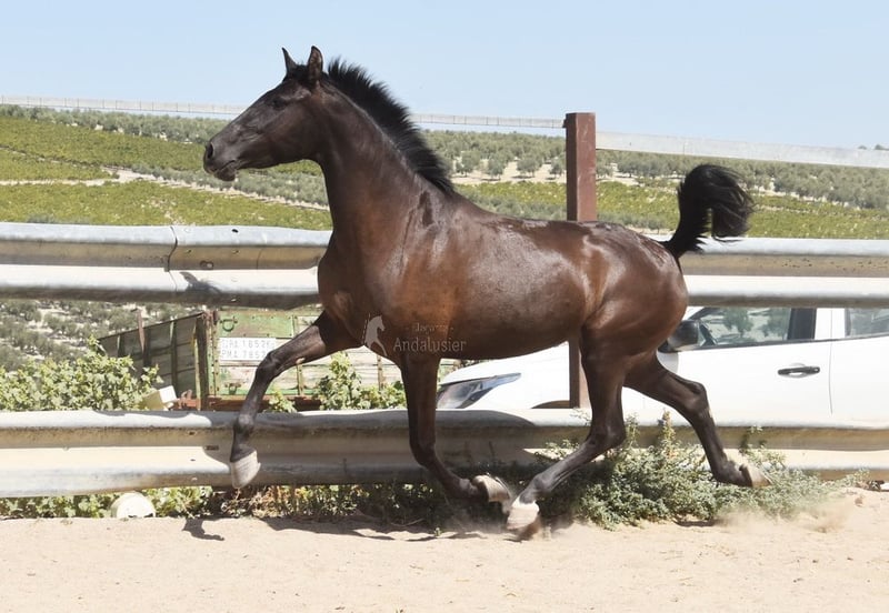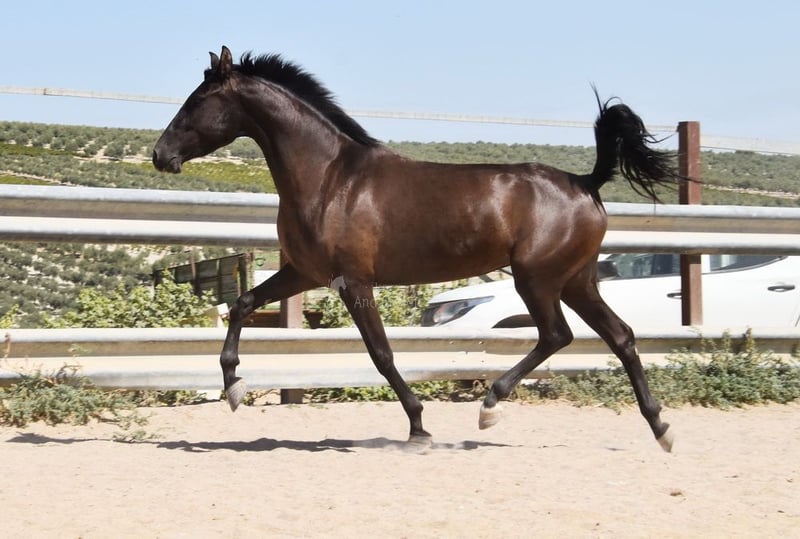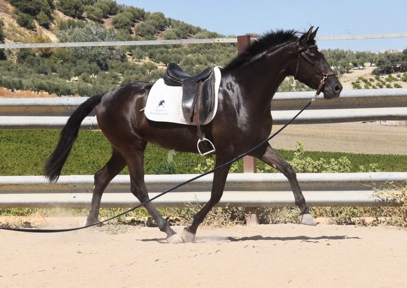 carácter amable, curioso, sociable, lungido, está siendo montado, buenos movimientos, color especial, preñada del semental PRE Bayo Perla Hidalgo de Fuerza, se espera la cría para agosto de 2026, ascendencia: Hnos Gonzalez Gallego, Francisco Diaz Gonzalez, Yeguada Militar, Yeguada el Bayo www.elegante-andalusier.com