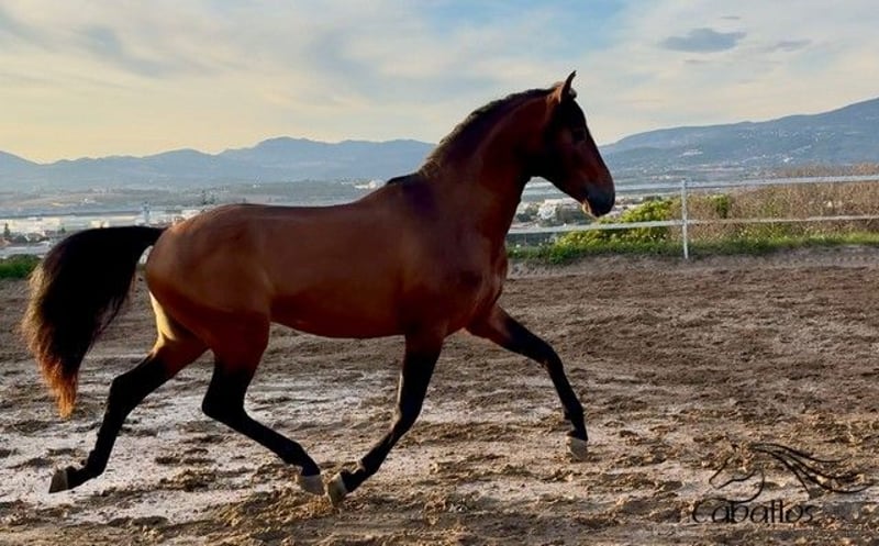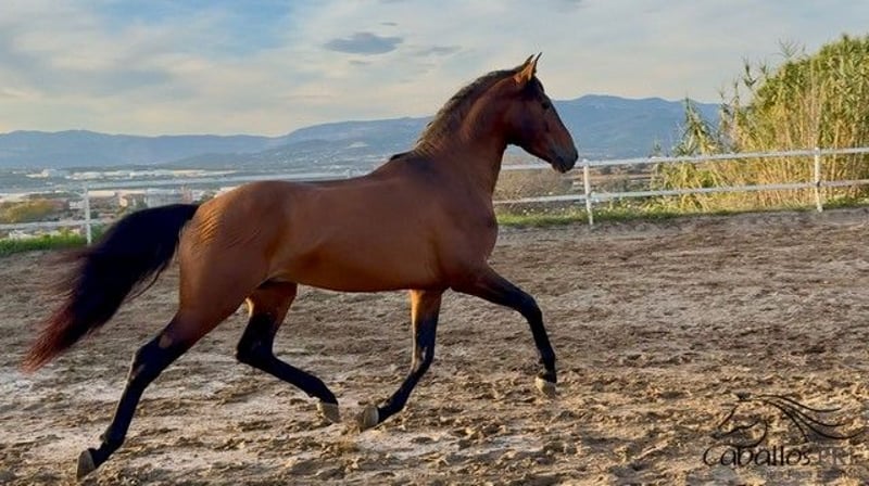 Tormento es un semental PRE de aproximadamente 1,59/1,60 m, equipado con movimientos excelentes. Nació en julio de 2021. Tiene un carácter muy dulce y cariñoso, y le encanta cuando sus cuidadores se dedican a él. Conoce la silla y las bridas, y actualmente se está preparando para su iniciación en la monta. Durante el trabajo con la silla y las bridas, se muestra muy tranquilo y coopera de manera muy obediente. Siempre es colaborador, completamente honesto y confía en sus cuidadores. En el establo no muestra ningún comportamiento de semental. No obstante, si se desea, podría ser acortado en el lugar. Seguramente sería muy interesante para la disciplina de la Working Equitation, pero también para un jinete de doma o de ocio con aspiraciones. Si desea más información sobre él, por favor, póngase en contacto con nosotros por teléfono. Con mucho gusto le enviamos más vídeos tras una conversación personal. Le rogamos que tenga en cuenta que no respondemos a solicitudes anónimas. El transporte puede organizarse a nivel mundial. La visita, previa cita, es posible en cualquier momento.