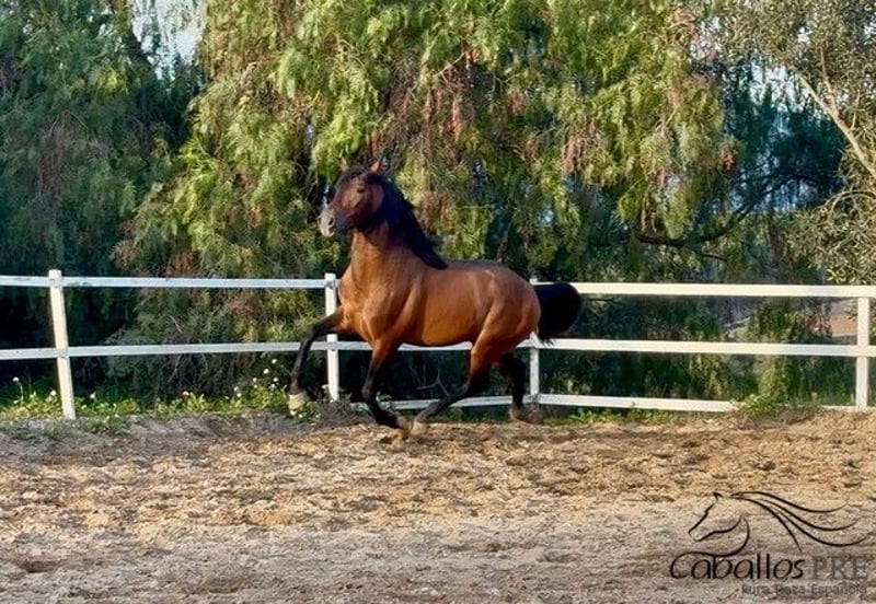 Tormento ist ein 1.59 m großer,mit hervorragenden Bewegungen ausgestatteter, PRE Hengst. Er ist geboren: 07/2021 Er hat einen ganz tollen, sehr liebevollen Charakter und mag es sehr wenn seine Menschen sich mit ihm beschäftigen. Er kennt Sattel und Trense und wird in kürze angeritten. Bei der Arbeit mit Sattel und Trense zeigt er sich sehr unbeeindruckt und macht alles ganz brav mit. Er ist immer kooperativ und vertraut seinen Menshen. Er zeigt im Stall keinerlei Hengstmanieren. Auf Wunsch könnte er aber selbstverständlich noch vor Ort gelegt werden. Er wäre sicher auch für die Working Equitation sehr interessant, aber natürlich auch für den ambitionierten Dressur oder Freizeitreiter. Wenn Sie weitere Informationen zu ihm wünschen setzen Sie sich bitte telefonisch mit uns in Verbindung. Weitere Videos senden wir sehr gerne nach einem persönlichen Gespräch. Bitte haben Sie Veständnis dafür das wir anonyme Anfragen nicht beantworten. Tranpsort kann Weltweit organisiert werden. Besichtigung, nach Terminabsprache, jederzeit möglich.