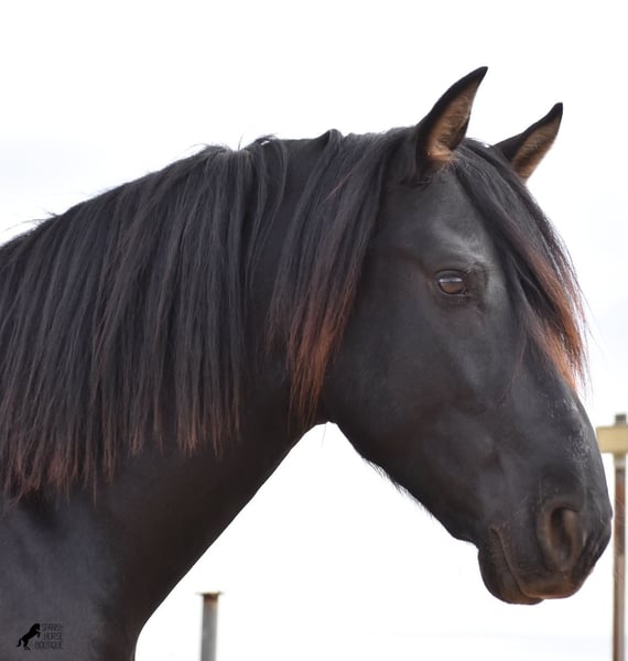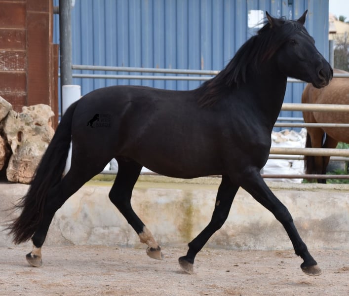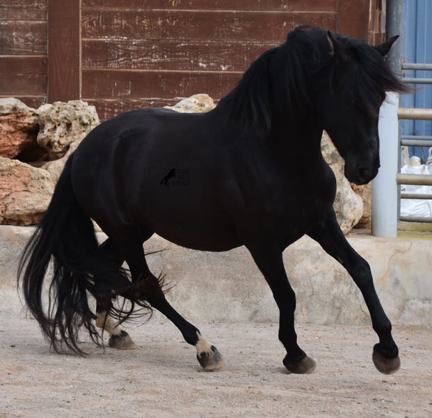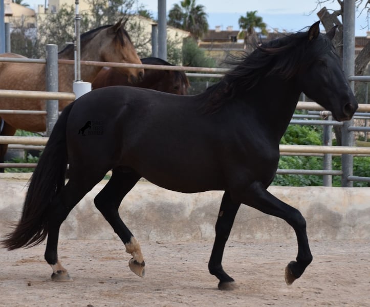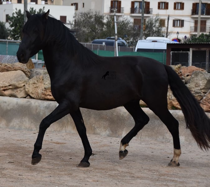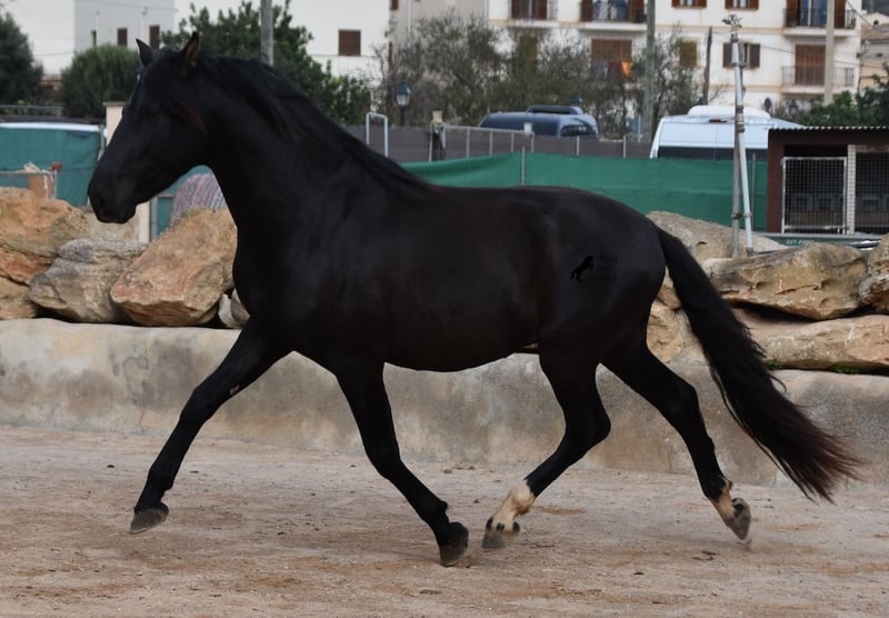 Hardly any other stallion has had as much success and is as famous as a Spanish dressage horse as POETA DE SUSAETA! And that is the sire of this baroque beauty, who has clearly also inherited good movement. This purebred Pura Raza Española stallion (Andalusian with ANCCE breed certificate), born in summer 2021, also has an excellent pedigree on his dam's side. There we find the Mejorante stallion NERO II and the ELITE stallion Inedito, both of whom are also great horses in the dressage world of the Spanish horse. And although the pedigree is very sporty, this youngster is beautifully compact and baroque, which makes him even more special. Plus the beautiful black coat and the lovely eyes - what more could you wish for? He has not yet been broken in, as it is important to the breeder that his horses have time to grow and are not overtaxed. This pays off, because the stallion is absolutely people-friendly, deeply relaxed, cuddly and a great guy all round. He lives next to mares, which doesn't interest him at all ;) He currently measures 159 cm and will grow a little more. He is barehoofed, lives in a stable and there is the possibility that he will be gelded and/or ridden on site. He is currently on Mallorca! Videos and pedigree available on request. A top horse at a very fair price. I would be happy to organize an AKU, riding, transport or even your trip if you come to see him in person. Details can be found on my website or in conversation. Saludos from Spain