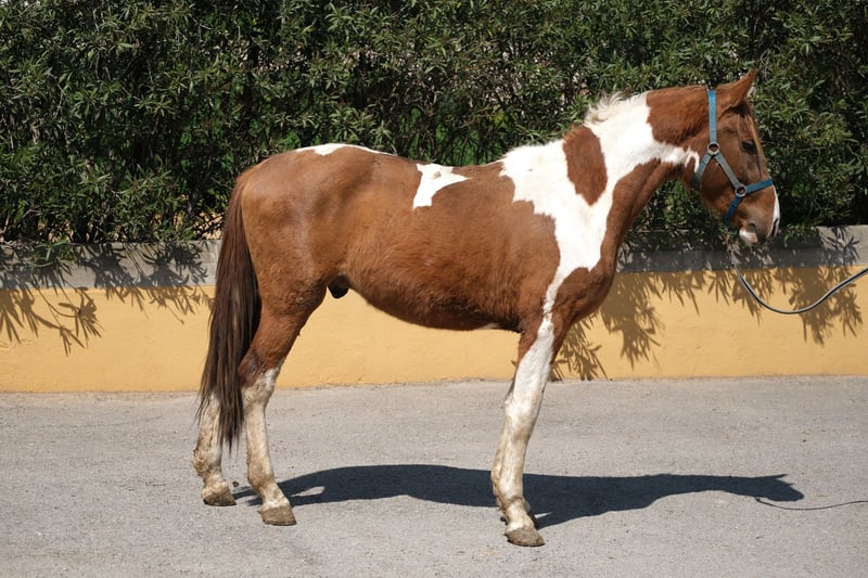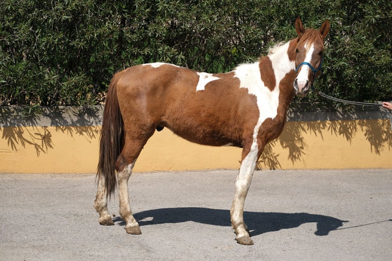 Nasz piękny młody ogier ma 4 lata, zna abecadło źrebiąt i obecnie mieszka w boksie paddock obok innych koni. Jest to krzyżówka PRE i klaczy andaluzyjskiej, w której również znajduje się Quarter Horse, i posiada paszport equiden. Dzięki temu ma bardzo wyjątkowy wygląd jako srokacz z barokową sylwetką i wspaniałą aurą. Jego docelowy wzrost jako dorosłego ogiera szacowany jest na około 1,60 m. Ma bardzo żywiołowy, ciekawski i towarzyski charakter, więc chętnie bierze udział we wszystkim i cieszy się długimi chwilami pieszczot. Chce być wszędzie i dokładnie wszystko bada. Jest figlarnym koniem, z którym spędzanie czasu to czysta przyjemność. Zna już psy i nie da się nimi zastraszyć. Wyrasta na wspaniałego i odważnego ogiera, który w przyszłości może podążać w różnych kierunkach, zarówno w ujeżdżeniu, w working equitation, w pokazach, jak i jako partner do rekreacji. Zna już abecadło źrebiąt i wie, co to znaczy być lonżowanym, jednak nie był jeszcze dosiadany, więc jest idealny dla kogoś, kto chciałby samodzielnie go szkolić i nie chce zaczynać w młodym wieku, ponieważ większość koni w Hiszpanii jest dosiadana już w wieku 3 lat, więc ma się szczęście, że ten piękny 4-letni Hiszpan nie został jeszcze dosiadany. Obecnie mieszka u swojej hodowczyni, która wychowuje swoje konie z wielką miłością i cierpliwością, dzięki czemu rozwijają się w konie o jasnym umyśle i otwartym sercu. Dla niego życzymy sobie człowieka, który chciałby wspólnie z nim stworzyć zespół i dalej go wychowywać, aby mógł stać się wspaniałym ogierem lub wałachem. Kastracja na miejscu jest również możliwa w razie potrzeby. Lokalizacja: Barcelona, Hiszpania, spotkanie w Hiszpanii oraz transport mogą być bezproblemowo zorganizowane.