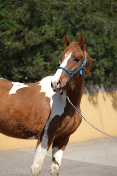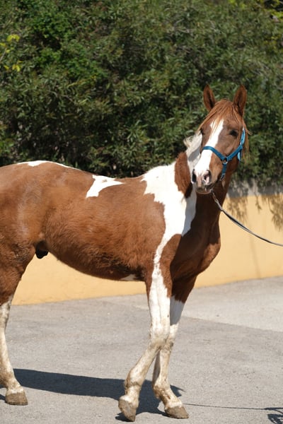 Nuestro bonito potro tiene 4 años, conoce el ABC de potros y actualmente vive en un box de paddock junto a otros caballos. Es una cruz entre un PRE y una yegua andaluza, que también tiene sangre de Quarter Horse, y posee un pasaporte equino. Esto le da una apariencia muy especial como pinto, con su figura barroca y una gran presencia. Su altura final como semental adulto se estima en aproximadamente 1,60 m. Tiene un carácter muy despierto, curioso y sociable con las personas, por lo que le gusta estar presente en todo y disfruta de largas sesiones de caricias. Quiere participar en todo y explora todo con mucho detalle. Es un travieso con el que es muy divertido pasar el tiempo. Ya conoce a los perros y no se deja intimidar por ellos. Está creciendo para convertirse en un semental maravilloso y valiente, con el que se pueden explorar diversas disciplinas en el futuro, tanto en doma, en working equitation, en espectáculos o simplemente como compañero de ocio. Ya conoce el ABC de potros y ha sido trabajado en la cuerda, pero aún no ha sido montado, por lo que es perfecto para alguien que desee educar a su propio caballo y no quiera comenzar a una edad temprana; la mayoría de los caballos en España son montados a los 3 años, así que con este bonito tienes la suerte de tener un español de 4 años que aún no ha sido montado. Actualmente vive con su criadora, quien cría a sus caballos con mucho amor y paciencia, para que se conviertan en animales claros de mente y abiertos de corazón. Para él, deseamos una persona que quiera crecer juntos como un equipo y que continúe educándolo, para que se convierta en un gran semental o en un manso. La castración en el lugar es posible si es necesario. Ubicación: Barcelona, España, un encuentro en España y el transporte se puede organizar sin problemas.