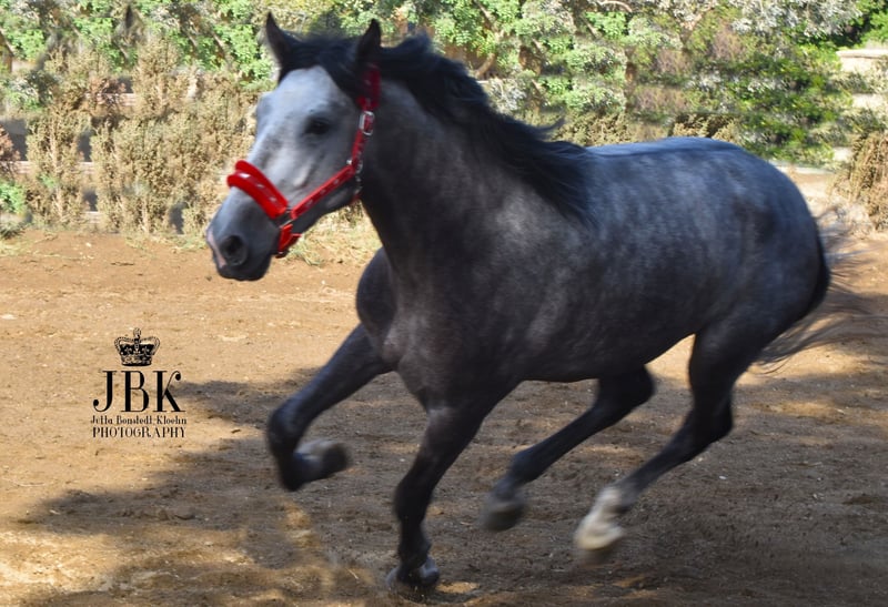 Echt een geweldige PRE lieverd met een uitstekende bloedlijn. Comanche is momenteel 1.6o m groot. Hij is geboren op 23.05.2021. Zijn bloedlijn barst van de uitmuntende exemplaren. Deze bevat enkele door Teodoro Herce gefokte schatten, Yeguada Lovera exemplaren en de elite gefokte Educado X uit het Guardiola fokprogramma. Met Candau en Pallares hebben we beproefde Cartujano-lijnen. Een droomprins, deze geweldige jonge hengst. De superieure PRE komt niet alleen tot uiting in zijn bewegingen, maar ook in zijn karakter. Hij werkt ook heel goed mee, is geïnteresseerd in alles wat nieuw is en is volledig probleemloos in training en omgang. Ingebroken, momenteel 1,60 meter groot.