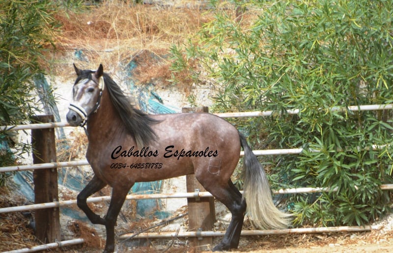 Een geweldige jonge hengst met een correct, harmonieus gebouw. Hij is goed opgevoed en kent het veulen ABC. De jonge man kan zich ook goed bewegen. Hij heeft drie zeer goede basisgangen. Hij wordt voorzichtig bereden. Inmiddels kent hij al het zadel. In de omgang is hij braaf en eenvoudig. Afstamming: Vader is een Felipe Garrocho en de moeder gaat terug op Pallares. Het paard wordt in opdracht verkocht. Hij kan bij ons in training blijven. Een keuring kan op korte termijn worden geregeld. Internationaal transport.