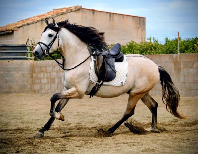 The exceptionally handsome buckskin gelding Albero is looking for his forever home... This extraordinary young gentleman displays beautiful movement and has a very calm and composed character. He impresses with his pleasant temperament, as he is currently ridden and worked with exclusively by a teenage rider. It is likely that he may turn grey in the future. He is a promising young talent for ambitious riders who value quality and potential. A pre-purchase examination is currently being arranged. If needed, he can also be gelded. He has a passport but without pedigree documentation. If you are interested or have any further questions, please feel free to contact me. Kindly include your phone number so I can get back to you as quickly as possible. We have a wide selection of various Spanish horses with different levels of training. If you have a specific horse in mind, we will do our best to find your dream horse.