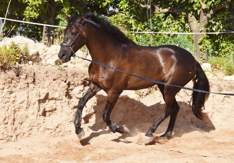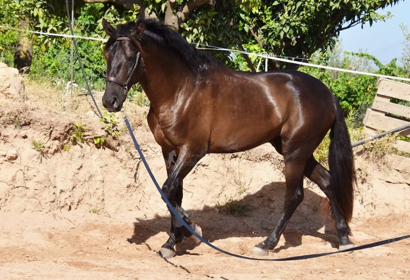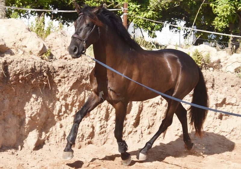 lieber ruhiger Charakter, neugierig, verschmust, in den Grundgangarten geritten und Gelände, gute Bewegungen, Rappe mit PRL-Gen, Abstammung: Yeguada las Espadas, Yeguada los Valcanos, Ururopa Laborioso III ist qualifiziert www.elegante-andalusier.com