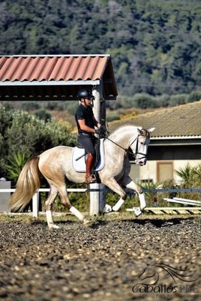 Geboren: 2021 Größe aktuell ca. 1.62 m Hengst - kann auf Wunsch noch vor Ort gelegt werden Ausbildungsstand: Sicher in den GGA geritten - auf dem Platz und im Gelände Standort: Barcelona, Spanien Wunderschöner Schimmelhengst mit tollem, klarem Charakter. Immer ehrlich und umsichtig. Er hat eine tolle Arbeitseinstellung und macht immer alles ganz cool und entspannt mit. Er zeigt keine Hengstmanieren, kann auf Wunsch aber noch gelegt werden. Er verfügt über sehr ordentliche GGA und ist auch sehr interessant für die weitere Ausbildung in der Klassischen Dressur. Die Basis ist gelegt und er ist nun bereit für seinen Herzensmenschen. Wenn Sie weitere Informationen zu ihm wünschen setzen Sie sich bitte telefonisch mit uns in Verbindung. Videos senden wir sehr gerne nach einem persönlichen Gespräch. Anonyme Anfragen werden wir nicht beantworten. Transport kann Weltweit organisiert werden. Besichtigung, nach Terminabsprache, jederzeit möglich.