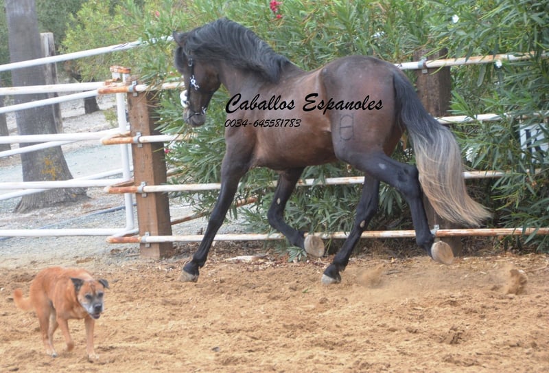 Zum Verkauf steht ein beeindruckender PRE Hengst, geboren im Jahr 2021. Dieser junge Dressur-Nachwuchs besticht durch seine außergewöhnliche Erscheinung als Braunfalbschimmel und ein Stockmaß von 163 cm. Sein Potenzial in der Dressur ist bereits jetzt deutlich erkennbar, und er zeigt sich stets lernwillig und motiviert. Mit seiner eleganten Bewegung und seinem ausgeglichenen Temperament ist er sowohl für ambitionierte Turnierreiter als auch für Liebhaber dieser edlen Rasse ein wahrer Glücksgriff. Dieser Hengst bringt alle Voraussetzungen mit, um in der Dressurwelt zu glänzen. Abstammung: Großvater ist der Calificado Hengst Dictador, dessen Eltern ebenfalls Calificado gekört sind. Bei Interesse an diesem vielversprechenden Pferd freuen wir uns auf Ihre Kontaktaufnahme. Das Pferd wird im Auftrag verkauft. Er kann bei uns bin Beritt bleiben. AKU kann kurzfristig organisiert werden. Internationaler Transport.