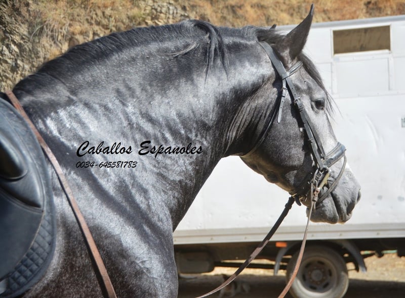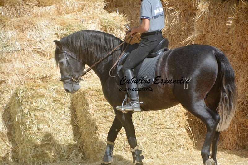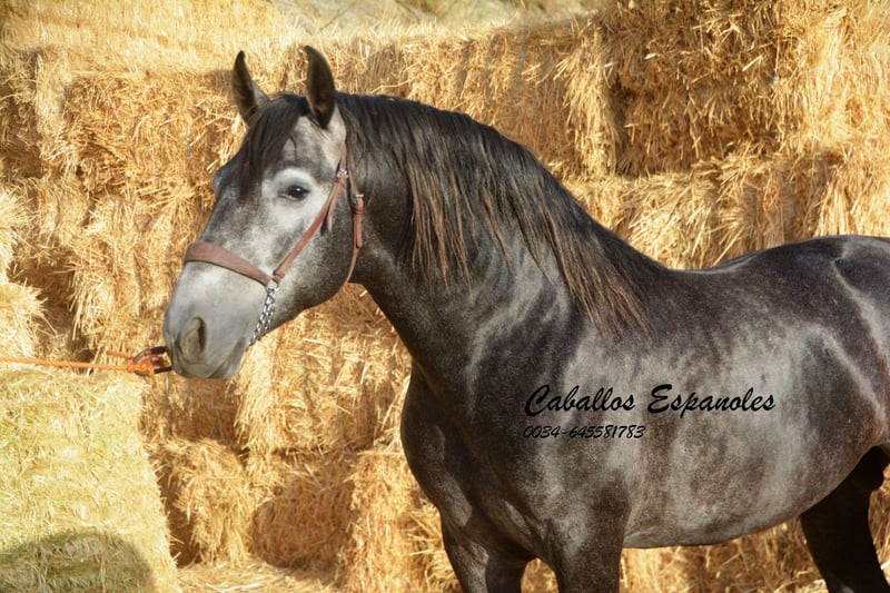 Denna barocka PRE-hingst är ett riktigt blickfång, ett vackert huvud med en mega krage. Han är väluppfostrad och har inga problem med andra hästar. Den unge mannen har tre bra grundgångarter. Han rids nu utan longerlina och är redan ganska balanserad. Hingsten från Yedra Stud har också ridits i terrängen tidigare. När han arbetar i ridhuset vill han gärna samarbeta och är fokuserad på ryttaren. En imponerande PRE som kommer att glädja sin ryttare i alla discipliner. Hästen säljs på provision Han kan förbli i träning hos oss. En AKU kommer att organiseras med kort varsel. Internationell transport.