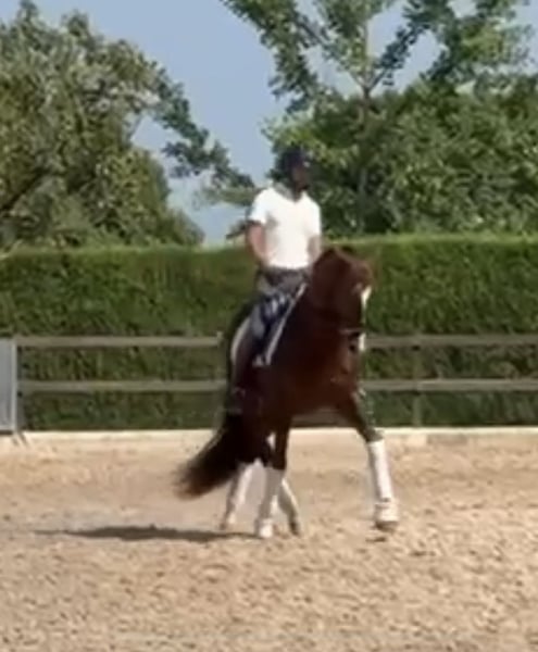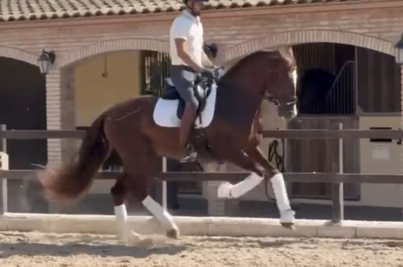 🇪🇸 VIOLINO 🇪🇸 🔥 Exceptional Chestnut PRE Stallion – 5 Years – 1.66 m – Grand Prix Prospect 🔥 For the discerning rider or investor seeking true quality, this is a rare opportunity to acquire a top-class Pure Spanish Horse with all the attributes to shine at the highest levels of dressage. Born in 2020, this striking chestnut stallion stands at 1.66 m and captivates with his elegance, presence, and naturally uphill frame. His conformation, movement, and exceptional trainability make him an ideal candidate for a future Grand Prix career. Currently working at the 5-year-old level, he is already showing a remarkable aptitude for collected work, including piaffe, to develop greater control, engagement, and preparation for advanced movements such as one-tempi changes. His work ethic, balance, and cadence set him apart from the ordinary. ✅ Age: 5 years ✅ Height: 1.66 m ✅ Colour: Chestnut ✅ Stallion – Pure Spanish Horse (PRE) ✅ Current Level: 5-year-old FEI level, schooling piaffe ✅ Health: 100% sound, full set of clean X-rays available ✅ Piroplasmosis free With his charismatic presence, exceptional movement, and proven soundness, this stallion represents not only a competitive prospect but also a valuable investment in the international dressage arena.
