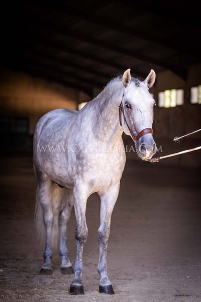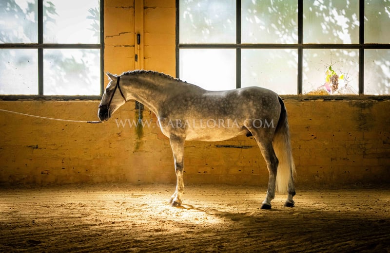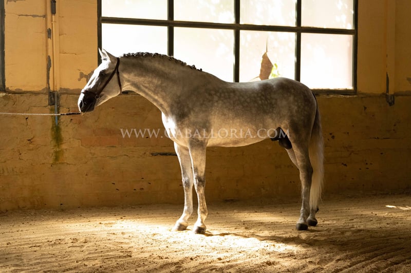 Name: Abaquio Born on: 12.04.2020 Stock size: 1,67 m Training level: Level 2 ANCCE classification: Reproductor básico ( licensed ) Abaquio is an absolutely lovely and uncomplicated PRE stallion with a height of 1.67 m. His relaxed character makes him interesting for the ambitious dressage rider as well as for the leisure rider. Whether in daily training or in handling, Abaquio is always friendly and cooperative. Thanks to his solid training at level 2, he offers a good basis for further progress in dressage or as a relaxed companion for leisure riding. Information on request! *All visual content, including photos and videos, presented by Caballoria S.L. are protected by copyright. This means that the reproduction, distribution, exhibition or any use of these materials without the express and written consent of Caballoria S.L. is strictly prohibited. Copyright law ensures that authors retain control over their works and are appropriately recognized and compensated for their use.