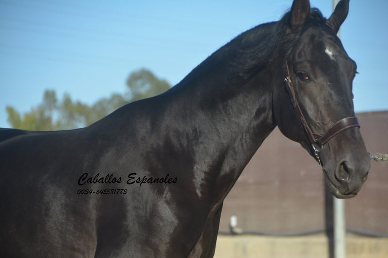 Large-framed, beautiful PRE stallion with a harmonious build. He will become an impressive Spaniard. The stallion is affectionate and well-behaved, always attentive to people and in a good mood. He is equipped with three good basic gaits. The young horse has been gently started under saddle. He is now ridden without a lunge line. He immediately gives a very trustworthy feeling. Motorcycles have often revved loudly on the neighboring property, but this did not impress him at all. A really great guy looking for a great person. The price is also very interesting. Pedigree: Sire is a Torreluna, whose sire is Hacendado and PamperV (both Marín García). The dam is from Nero Maynou II - last photo. The horse is being sold on commission. He can remain in training with us if desired. A pre-purchase exam can be organized at short notice. International transport available.