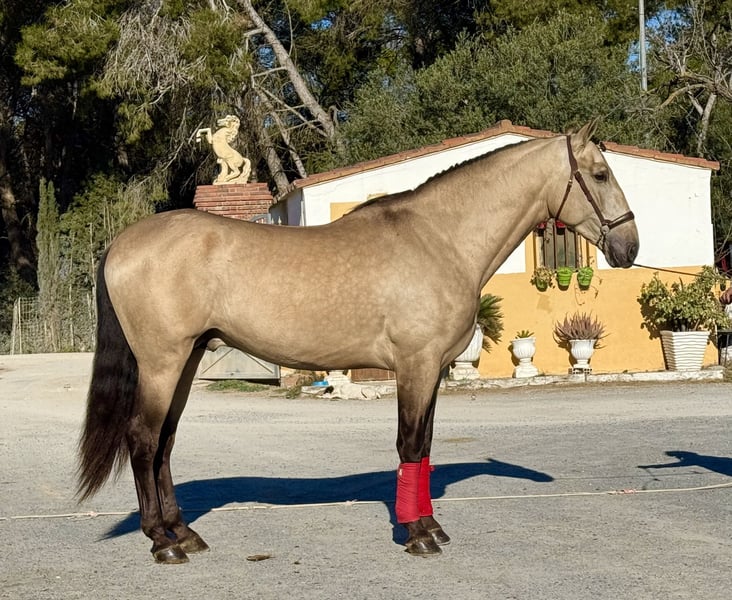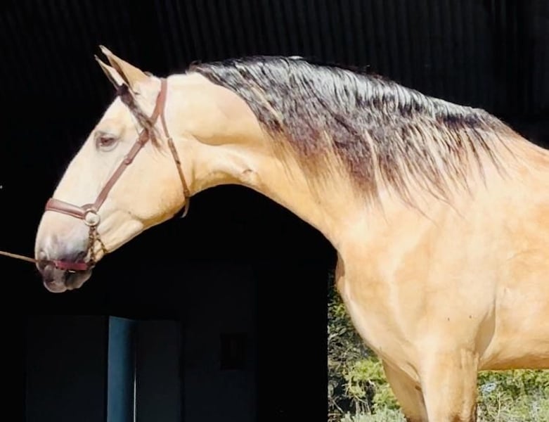 Our licensed PRE stallion in special color Bayo (dun) has a great character, he is eager to work but always manageable and has a lot of potential. He is currently being broken in and already walks, trots and canters under the rider. Videos and more information on request!
