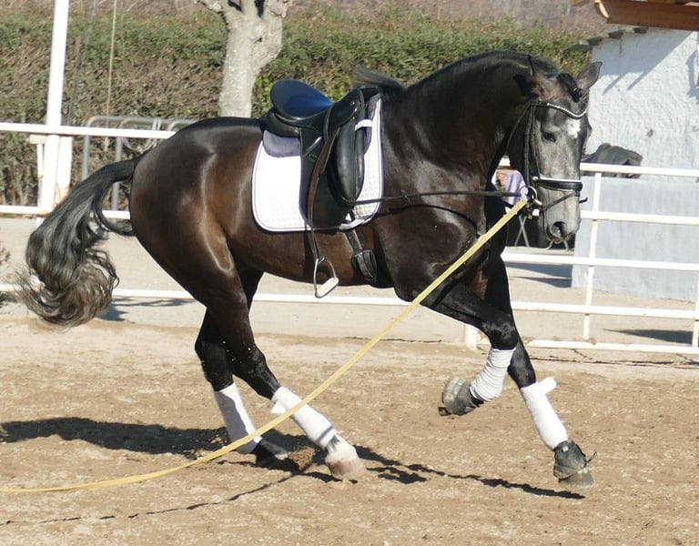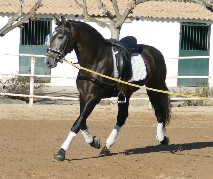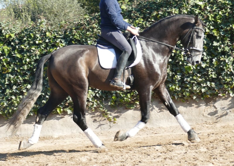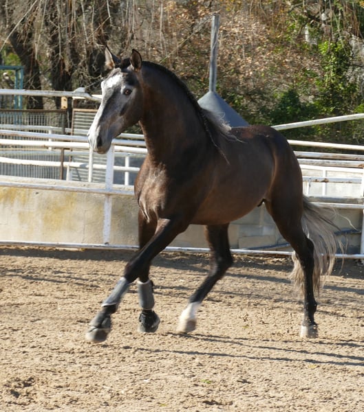 Judio ist ein besonderer PRE-Wallach. Er besticht durch eine elegante, rassetypische und gleichzeitig athletische Erscheinung. Obwohl er noch jung ist, zeigt sich bereits eine ausgeprägte, eher barocke Morphologie. Ein Dressurpferd mit gut entwickelten Sprunggelenken, drei sehr klassische Gänge. Ausgeglichenes und vertrauensvolles Wesen. Unserer Meinung nach ist er ein echtes Dressurprojekt für Amateure oder Profis. Es bleibt spannend, seine Entwicklung zu beobachten. Er wird uns noch überraschen! Herkunft: Dressur aus Senillosa.