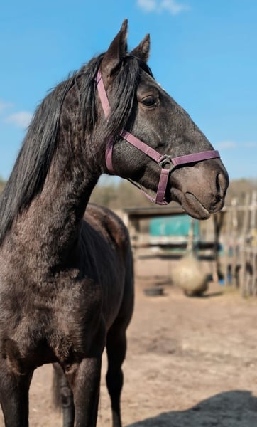 Der wunderschöne Hengst ist 170 groß und einfach ein riesen großer "Bär" er schmust unglaublich gerne und ist super einfach vom Wesen . Er steht direkt neben Stuten , er zeigt sich hier ein völlig problemlos. Er ist noch roh ;) näheres gern dazu über privat . Wir suchen jemanden der sich in den Kerl verliebt . Für uns ist er leider einfach zu groß . Er steht bei Ludwigsfelde Berlin