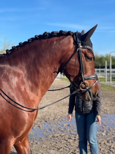 Dieser braune PRE-Hengst ist nicht nur bildschön sondern auch einfach nur ein Traum im Umgang und unterm Sattel. Er kommt aus allerbesten Verhältnissen, top gepflegt, top geritten und charakterlich einwandfrei. Er ist ganz leichtrittig und bereits bis hin zur Galoppwechseln in Serie spielerisch ausgebildet. Piaffe an der Hand ist ebenfalls in seinem Repertoire. Er hat auch Tuniererfahrung: Platzierung Ancce international, Dressur CDN*** 74,8% Platz 1! Er ist charakterlich auch für Anfänger oder Kinder geeignet. ✅Verladefromm ✅schmiedefromm ✅für Anfänger/Kinder geeignet ✅Tuniererfahrung und Platzierung ✅Piro-frei Mehr Info und Videos erhalten Sie gerne persönlich!