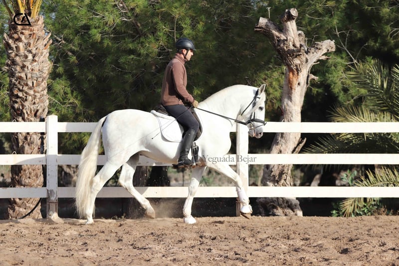Rufo de Martet is a young horse with a very good conformation and three good gaits. His character is very docile, friendly and trusting with people, making handling him easy. Currently, he has a good dressage base, appropriate for his age, and is perfect for leisurely rides, being very calm and reliable. His bloodline is very interesting, he is the son of Lucius de Martet, an handsome stallion, with the typical Pure Breed Spanish beauty, whom also competes in dressage at the St. George level. Rufo is a grandson on his sire's side of Armas Felino (Qualified Stallion), who comes by Lagar (Qualified Stallion) both from Yeguada Plaza de Armas. His mother is Jala de Martet, by Manijero IX (Young Recommended Breeding Stock and Qualified Stallion), she is a mare with classic PRE bloodlines, by Bohorquez and Miura line. Rufo could be a beautiful future project, both for competition and for family enjoyment.