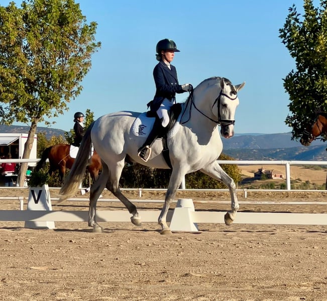 Stallion Purebred Spanish Horse. Multi-awarded and competing in SICAB. Reserve Champion of the Breed in Madrid. 2-time Breed Champion. Currently competing. Level 4 Dressage. Supports, lateral movements, shoulder-in, flying changes. Characterized by having a fabulous character and temperament in work and handling. Not problematic with mares. Works in the arena with mares without issues. Very sweet and pleasant character. Measured with a measuring stick at 1.65 m. Vaccinated, free of piroplasmosis, and good X-rays. If you are interested, it is important to come and see in person. If you like it and want to buy it, we can arrange transport to anywhere in the world. Sale with contract. A horse of high quality for competition and enjoyment. Contact only serious inquiries. Inquire about price. Contact methods: Email: info.equsur@gmail.com WhatsApp: +34 612219256