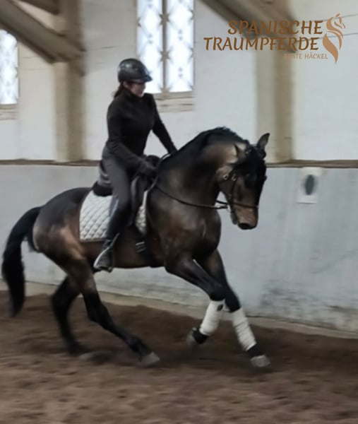 What an extraordinary stallion… ✨ Are you searching for an exceptional horse 🐎 with impressive size, a distinctive color, and a unique presence? 🌟 Then our six-year-old QUINTANILLO SH will captivate you. 🤩 Our six-year-old PRE stallion QUINTANILLO SH impresses not only with his stunning appearance but, above all, with his one-of-a-kind temperament. Shortly after his arrival, he already shows himself to be very people-oriented, attentive, and affectionate – a stallion who actively seeks human contact and offers trust. These qualities are far from common in this form. Under saddle, QUINTANILLO SH continues to impress: balanced, expressive, and very comfortable movements combined with a pleasant energy and a consistently manageable go. A horse with an excellent foundation, great quality, and an honest, refined character – ideal for riders seeking a talented yet reliable partner. X-rays are available. Videos can be viewed on my website: www.spanische-traumpferde.de Location: 23795 Traventhal Getting to know our QUINTANILLO SH is possible almost any time by arrangement. For this introductory session, which includes groundwork, walking, and possibly a trial ride, I take enough time so you can get to know your dream horse in all its facets at your leisure. To protect our horses and prevent riding tourism, I charge a flat fee of €50.