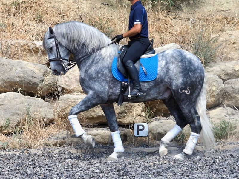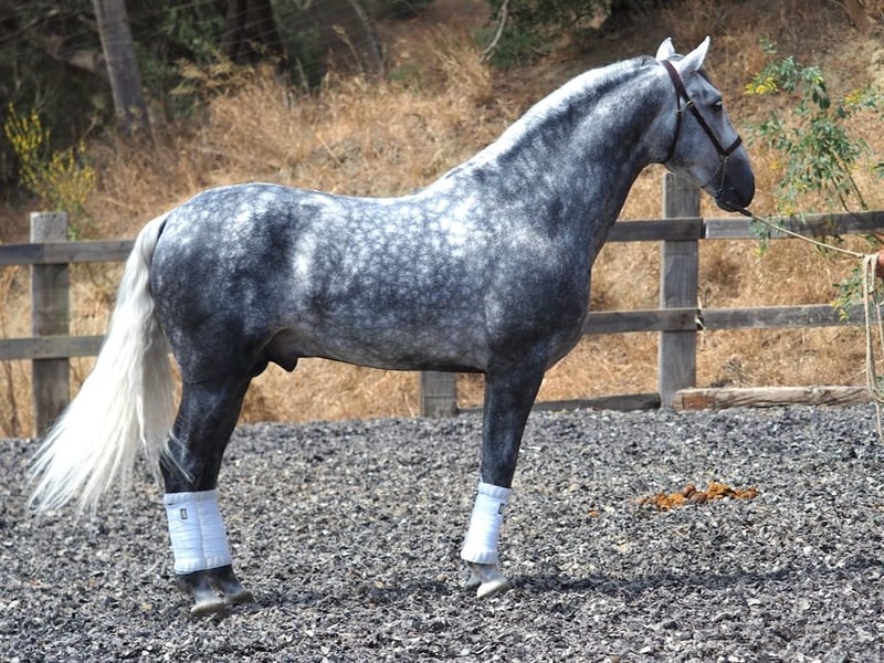 Questo giovane stallone dal'impressionante aspetto barocco ha un carattere dolce e piacevole che farà innamorare chiunque lo incontri. Con una morfologia solida, è un cavallo con un fisico impressionante, molto ben adattato ai canoni del cavallo spagnolo, bellezza espressiva, movimenti elevati e un carattere a prova di bomba. Nonostante la sua giovane età, è molto avanzato nel dressage, poiché è un cavallo molto facile, intelligente e con una grande facilità di connessione con il suo cavaliere. Nato nel 2020, questo bellissimo stallone è iniziato al piaffe a la mano, passo spagnolo e mostra grande facilità nell'eseguire le pirouette. Leggero al contatto, è un cavallo molto facile e comodo da montare, abituato anche a uscire in campagna, dove è felice e calmo, fornendo sicurezza e fiducia al suo cavaliere. È un cavallo molto interessante per i cavalieri amatoriali che cercano un compagno con cui divertirsi, imparare e continuare a evolversi insieme.