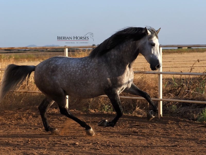 Wir präsentieren einen prächtigen Pura Raza Española Hengst, geboren im Jahr 2020, mit einem Stockmaß von 168 cm, der die Essenz des barocken PRE-Typs perfekt verkörpert: kraftvoll, ausgewogen und elegant. Seine solide, kompakte Struktur in harmonischen Proportionen verleiht ihm eine eindrucksvolle Erscheinung – sowohl in der Reitarbeit als auch im täglichen Umgang. Sein schön gewölbter Hals, der kräftige Rücken und die abgerundete Kruppe vervollständigen ein Gesamtbild, das Reinheit und Noblesse dieser Rasse widerspiegelt. Im Hinblick auf seinen Ausbildungsstand wird dieser Hengst derzeit auf Niveau 1 geritten und zeigt eine ausgezeichnete Arbeitsbereitschaft sowie eine schnelle Auffassungsgabe. Sein Trab überzeugt durch ausdrucksstarke Bewegung, gute Kadenz, Elastizität und Raumgriff – Eigenschaften, die großes Potenzial für die klassische Dressur oder die Hohe Schule versprechen. Sein edles und ausgeglichenes Temperament macht ihn zu einem sicheren und leicht zu reitenden Pferd – ideal für Reiter, die einen funktionellen Hengst suchen, ohne auf Schönheit und Klasse des PRE zu verzichten. Darüber hinaus verfügt er über eine außergewöhnliche Abstammung: Er ist ein Sohn von Romero de Trujillo, einem der bekanntesten und meistprämierten Hengste Spaniens – SICAB-Champion und Referenz in Morphologie, Bewegung und Genetik innerhalb des Pura Raza Española. Diese Abstammung verleiht ihm nicht nur hervorragende morphologische und funktionale Qualität, sondern auch einen hohen genetischen Wert für Züchter, die ein Pferd mit Zukunft und Prestige in ihr Zuchtprogramm aufnehmen möchten.