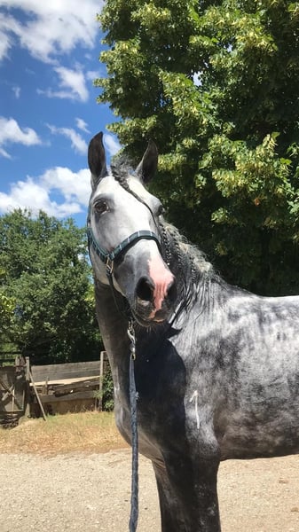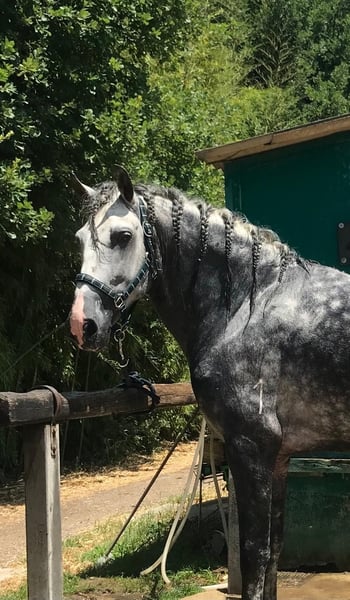Stallone PRE, 5 years old, with excellent conformation and three expansive, elastic, and regular gaits, making him ideal for dressage. He has successfully competed in the FISE Young Horses 4-year-old dressage category, achieving an average score of 73%, demonstrating significant potential for a continued competitive career. A very good-natured horse, balanced and cooperative, easy to handle on a daily basis, and quick to learn in training. In perfect health, regularly checked by a veterinarian and farrier.