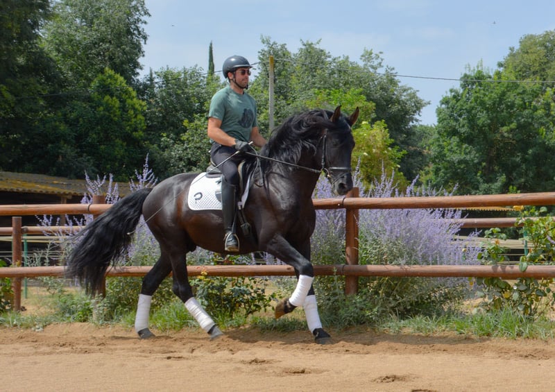 Cavallo di 5 anni, esce al campo da solo e in compagnia, montato in pista, super carattere e facile da montare e gestire. Ideale per passeggiate, per amatori o spettacoli e anche per la riproduzione. Il cavallo ha delle cicatrici sui garretti a causa di un'infezione avuta da puledro quando ha avuto la parotite. È stato controllato ed è un problema puramente estetico che non influisce sul lavoro né su altro, anche se le cicatrici rimarranno sempre, non peggioreranno né scompariranno.