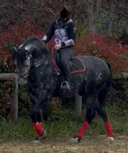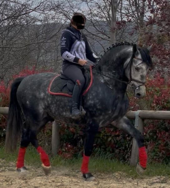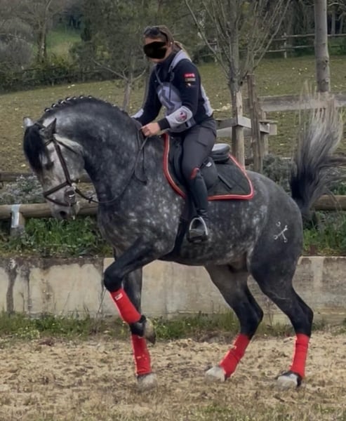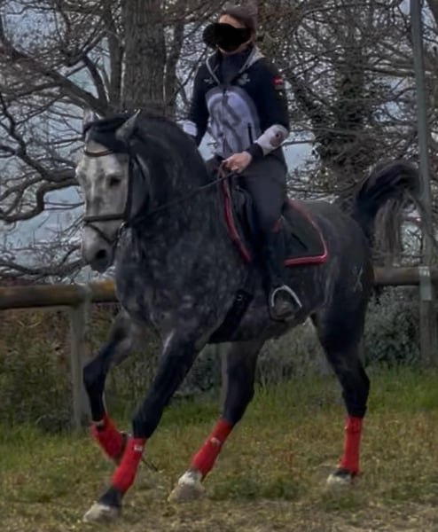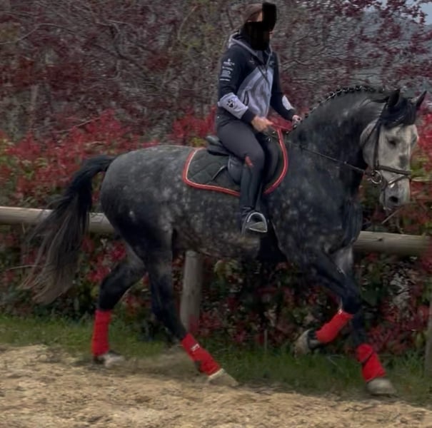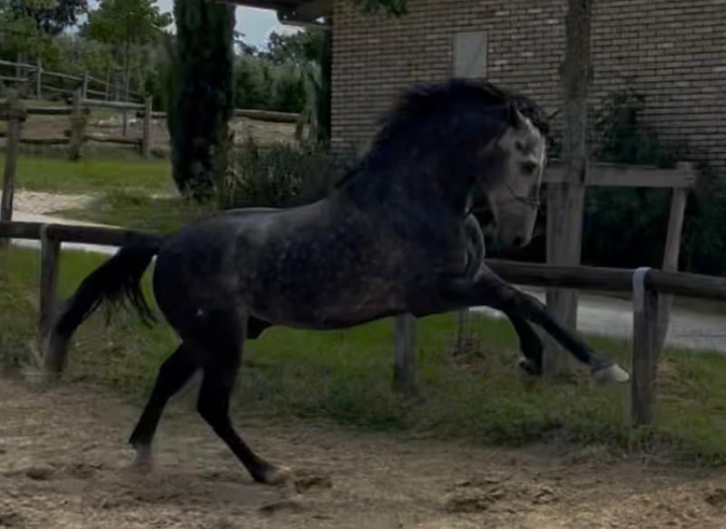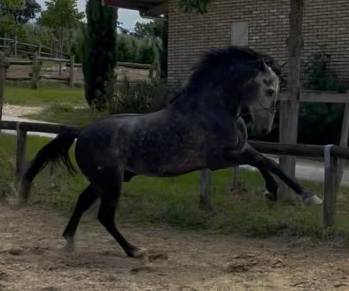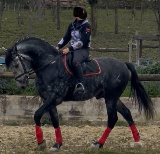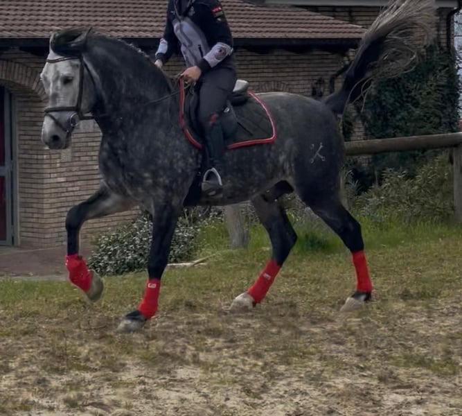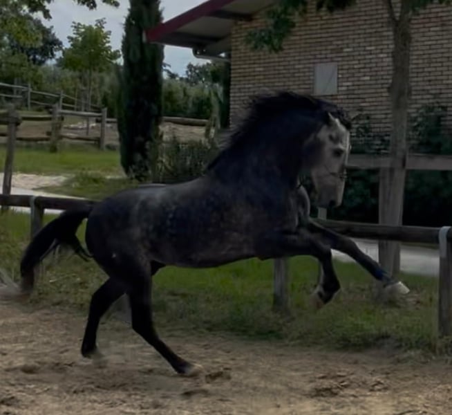 Meraviglioso PRE Puro Sangue Spagnolo, stallone 6 anni. Altezza 170 cm al garrese. Andature spettacolari. Cavallo da dressage e show. Stallone fuori dal comune approvabile per la riproduzione. Grande cavalcabilita'. Per gli acquirenti meno esperti informo che da adulto il cavallo diventerà di colore bianco. Oltre alle bellissime andature il cavallo ha un carattere davvero speciale che lo rende adatto a tutto. Tel 334/6283887