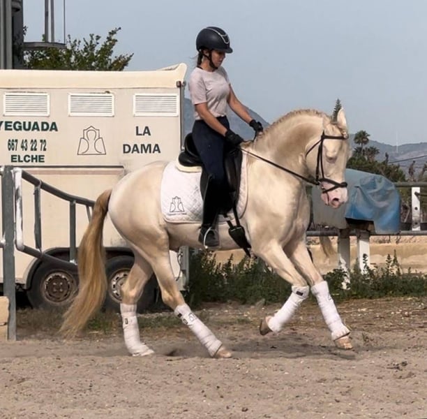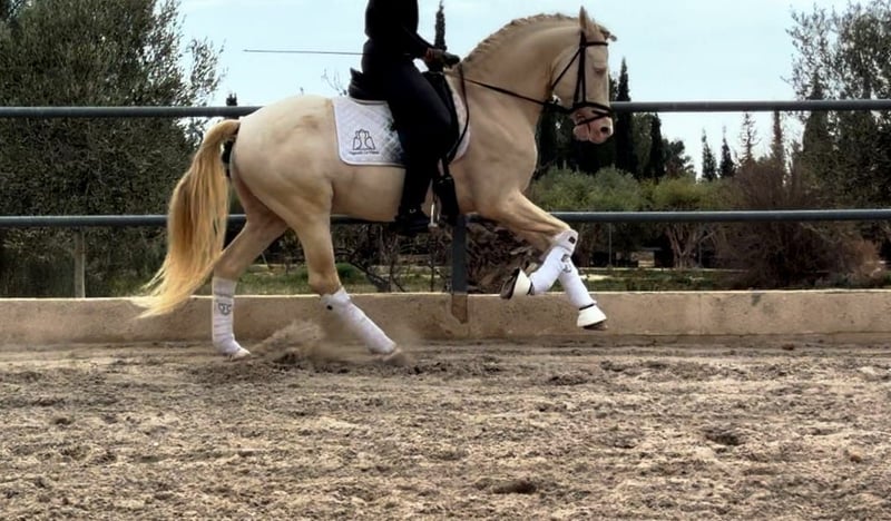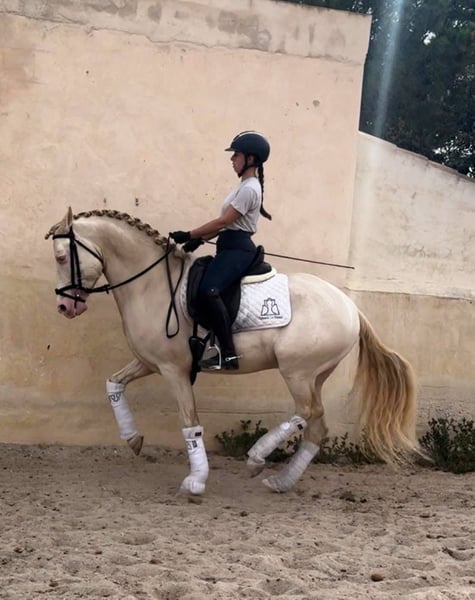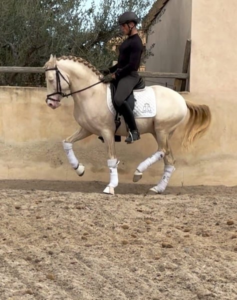 On behalf of a customer: Dulzon is a beautiful PRE stallion in a sought-after special colour. This lovely stallion has already been ridden well, rides at L/M level and is also proficient in piaffe, Spanish walk and changes. Naturally on a snaffle. He is reliable under saddle and learns quickly. He knows children, dogs, road traffic etc. Dulzon comes from the very best upbringing and has grown up in a herd. Accordingly, he is well socialised. He comes with full PRE papers and the best pedigree. Location: Spain - transport can be organised worldwide