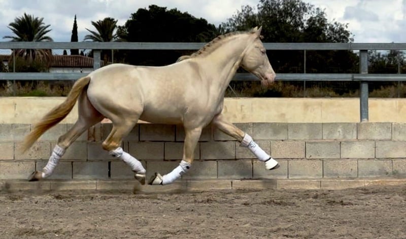 Im Kundenauftrag: Dulzon ist ein wunderschönere PRE Hengst in begehrter Sonderfarbe. Der liebenswerte Hengst ist bereits gut geritten, läuft auf L/M-Niveau, beherrscht zudem die Piaffe, den spanischen Schritt und die Wechsel. Selbstverständlich auf Trense. Unter dem Sattel zeigt er sich zuverlässig und lernt schnell. Er kennt Kinder, Hunde, Straßenverkehr usw. Dulzon kommt aus allerbester Aufzucht und ist artgerecht im Herdenverband gross geworden. Dementsprechend ist er gut sozialisiert. Er kommt mit vollen PRE Papieren und besten Abstammungen. Standort: Spanien - der Transport kann weltweit organisiert werden