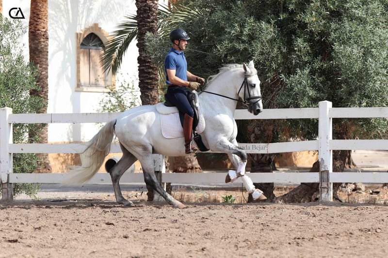 Decisivo CA is a beautiful young horse with three quality gaits and a very good character, docile and noble. His temperament is calm, friendly and trusting with people, all this makes his handling easy. Currently, he has a level of dressage according to his age: lateral exercises, trotting, backward steps. He also has very good aptitudes and predisposition to continue evolving in his learning process. His genetic line on the paternal side comes from Fer Davinci, a stallion bred by Yeguada Ferrero, with the Mañoso II F line. On the maternal side, Decisivo is a son of Decisiva MJB with El Hierro de Bohorquez, by Perdigón XVIII, Elite Breeder.