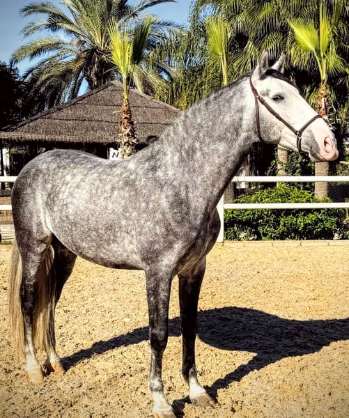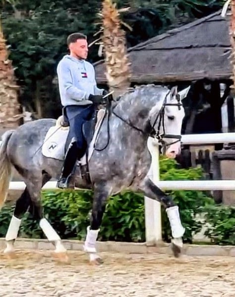 Dieser elegante und wunderschöne Apfelschimmel-Hengst, möchte gern in sein FOR EVER HOME vermittelt werden 🏡 Ein vielversprechender Dressurstern überzeugt durch sein harmonisches Erscheinungsbild und seine sehr guten Grundqualitäten. Sein ausgeglichener Charakter und dein Sanftmut machen ihn zu einem idealen Partner für ambitionierte Dressurreiter, die Wert auf Qualität und Leistungsbereitschaft legen. Er ist gut geritten und zeigt eine solide Basis für die weitere Ausbildung im Dressursport, und ist,bei entsprechender Förderung, der zukünftige Stern im Viereck. Ein vielversprechendes Nachwuchspferd für den gehobenen Dressurbereich, der sowohl durch seine Abstammung als auch durch sein Potenzial überzeugt. Sein unglaublich ruhiges und zuverlässiges Temperament lassen keinerlei Wünsche offen. Auch konnte er schon Turniererfahrung sammeln und sich auf das Siegertreppchen stellen. Er zeigt null Hengstmanier und bringt saubere Röntgenbilder mit. Im Gelände ist er absolut tiefenentspannt und es spielt keine Rolle. ob er alleine oder in der Gruppe unterwegs ist. Ihn bringt nichts ist der Ruhe . Er ist die perfekte Wahl für den anspruchsvollen Reiter/in. Wer ein qualitätsvolles Nachwuchspferd sucht, meldet sich bitte mit Telefonnummer, damit ich schnellstmöglich Kontakt zu Euch aufnehmen kann. Standort Spanien Nähe Sevilla. Wir haben eine große Auswahl an verschiedenen Pferden - vom Fohlen bis zum Gran Prix Pferd 🐎🐴