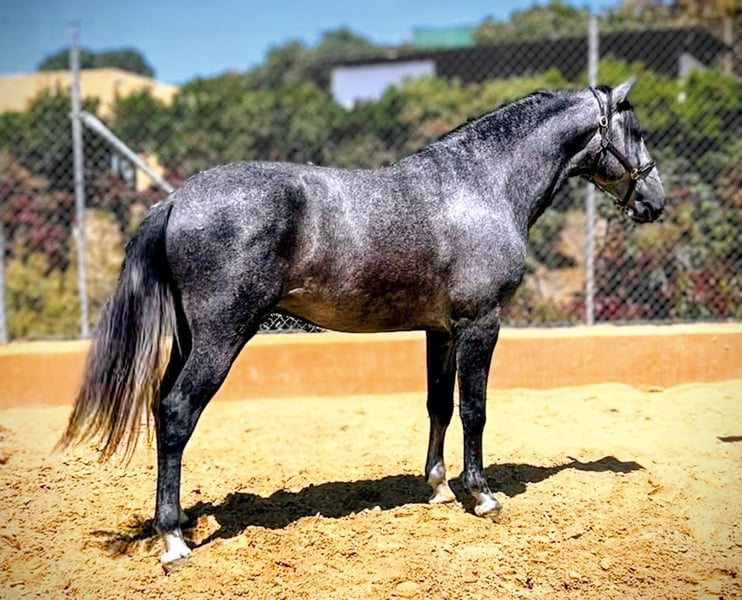 This elegant Spanish PRE stallion is looking for his forever home... 🏡 A true gentleman, perfectly suited for dressage! Such a horse with these outstanding gaits is rarely seen again... Yes, he is a grey! With his magnificent and exceptional movement, he is a top contender within his breed. His pedigree, featuring two elite stallions on his dam's side and highly awarded names in his bloodline on his sire's side, speaks a language of its own. He possesses the highest quality of movement, comparable only to top-level dressage horses. His impressive mechanics—combined with nobility, elegance, and coolness—as well as a top work ethic and an excellent character, make him a true gentleman of luxury, leaving no wishes unfulfilled! He is well-mannered, extremely calm, quiet in himself, eager to perform, highly talented, amateur-friendly, uncomplicated, easy to ride, reliable, and not at all stallion-like. So... what more could one ask for??? The stallion has been carefully and gently trained in bitless riding and already demonstrates promising performances in dressage. He is capable of piaffe and has a high degree of collection. His elegant appearance and charming personality make him an ideal partner for ambitious riders seeking a reliable and talented dressage partner. 🎀 Acting quickly is definitely worthwhile... 🎀 If you are interested or have further questions, I am happy to assist. Please contact me with your phone number so I can get in touch with you promptly. Arrange a viewing appointment and see this extraordinary horse for yourself! We have a large and carefully selected range of horses for every taste and need. From foals to Grand Prix horses, I can offer you everything. I look forward to your inquiries!