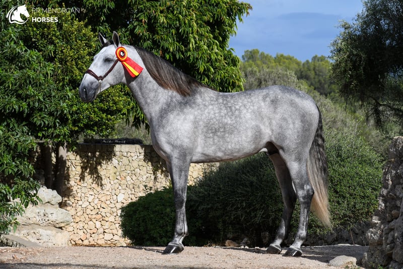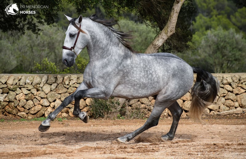 Magnificent 6-Year-Old Pure Spanish Breed Stallion A True Gem for Lovers of High-Quality Horses This stunning 6-year-old Pure Spanish Breed (PRE) stallion, registered in ANCCE grey, is now available for sale. He is an extremely special horse to his breeder, and we are seeking a five-star home where he will be cared for and appreciated as he deserves. This stallion will captivate you with his spectacular movements, which have been recognized in multiple competitions. Standing at 162 cm, his impressive presence makes him stand out in any arena. With a more introverted personality, he’s a sensitive horse who trusts his rider completely, forming a deep and unbreakable bond. Trained in both classical and Menorcan dressage, this stallion has intermediate-level training, including lateral work, Spanish walk, levade, and is currently learning passage, piaffe, and flying changes. He is highly versatile, accustomed to working in the arena and out in the fields, and is comfortable training alongside other stallions. His results in competitions speak for themselves: he has won awards for best movements and functionality, and was named Adult Champion of the Show and Champion of Functionality. This stallion is not only a beauty to behold but also a proven competitor. If you're looking for your next dressage project or a stallion for breeding, this horse is the ideal choice. His temperament, training, and proven competition results make him a horse with tremendous potential. And if breeding isn’t your goal, no worries—we can organize castration before transport to make him the perfect partner for any discipline. This stallion is regularly dewormed and vaccinated, is piro-negative, and has perfect X-rays. We can organize a pre-purchase exam, quarantine, and shipping worldwide for your convenience and peace of mind. For more information, photos, or videos, contact us privately. Located in Menorca We look forward to helping you find your perfect match in this exceptional stallion!