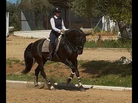 LUJOSO Superbe étalon PRE noir, approuvé à la monte au stud book de la race (ANCCE). Excellentes allures Monté en piste et en extérieur. Idéal pour loisirs, dressage, balades etc.. Taille réelle 1,65m Informations nous contacter Le cheval est visible près de Séville en Espagne (Andalousie).