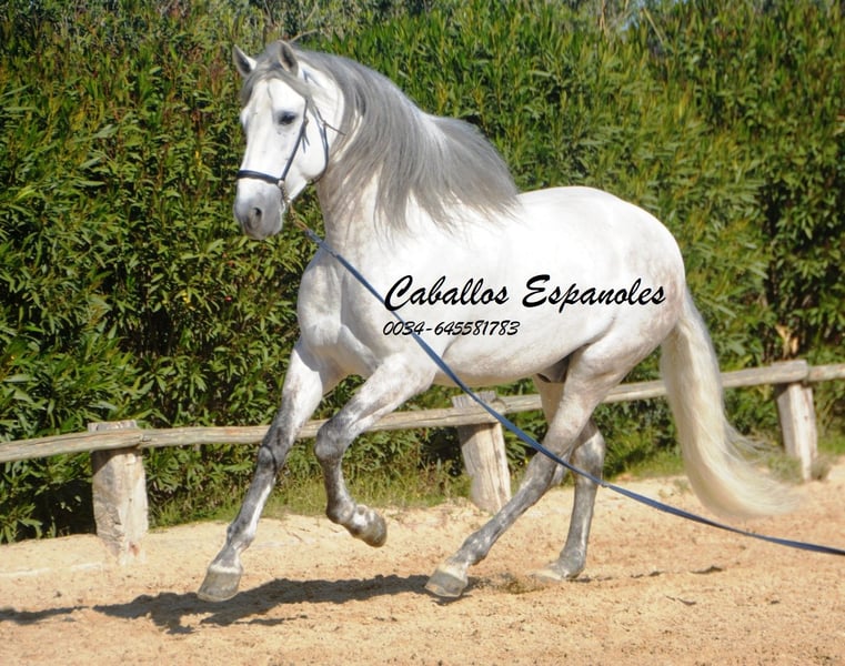 Deze klassieke schoonheid betovert met zijn barokke, elegante verschijning - de Spanjaard zoals hij vroeger was. De hengst heeft een zeer gelijkmatig karakter, super braaf bij het klaarkomen. Hij let niet op de jonge hengsten die in de wei spelen. De schimmelhengst heeft drie goede basisgangen en zit heel comfortabel. Hij is gereden in de basisgangen, zijgangen en we werken aan de vliegende wissels. Hij laat zijn eerste stappen in de piaffe al zien. Het paard wordt verkocht in opdracht Hij is welkom om bij ons in training te blijven. Een AKU wordt op korte termijn georganiseerd. Internationaal transport.
