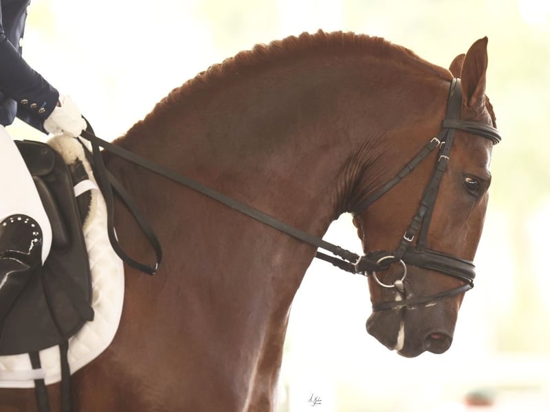 Dieser spektakuläre Hengst mit seiner beeindruckenden Fuchsfarbe und seinem außergewöhnlichen Temperament verbindet einen beeindruckenden Körperbau mit einem süßen und liebenswerten Charakter, der jeden, der ihm begegnet, verzaubert. Mit seinen drei guten Grundgangarten, seiner guten Rittigkeit und seinem außergewöhnlichen Verhalten ist er die ideale Wahl für einen Reiter, der Spaß daran hat, ein Pferd von den Grundlagen bis zur höchsten Stufe zu entwickeln. Mit seiner Erfahrung in Formationswettbewerben glauben wir, dass er ein großartiger Kandidat ist, den man in Betracht ziehen sollte, wenn man ein junges spanisches Pferd mit Talent und ohne Piroge sucht, das in die ganze Welt exportiert werden soll.