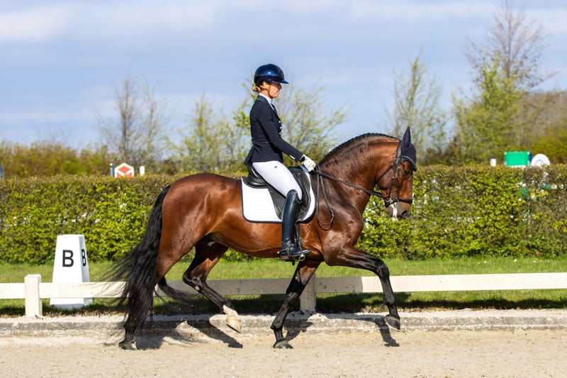 Frisante Torreluna È un bellissimo stallone baio con un bel carattere, ha solo 6 anni ma ha il fattore WOW. Frisante è un cavallo che ruba immediatamente il cuore con la sua bellissima criniera lunga, la sua enorme grinta anteriore e il suo splendido bagliore bronzeo. Ha 3 andature spaziose molto buone, Frisante possiede una camminata molto spaziosa e un grande trotto con una buona gamba posteriore e un canter in salita. È un cavallo con molto potenziale per il futuro, si lascia chiudere facilmente e impara rapidamente. Classificato KNHS L1 e Frisante è addestrato a livello M. Frisante si è qualificato per il CE MCI Boy horses nell'ottobre 2024. Selezione NK MCI 2024 con un bel punteggio di 77% e 75% e 3° posto. Frisante si è classificato al sesto posto in Europa ai Campionati Europei MCI ed è stato il miglior cavallo giovane dei Paesi Bassi. Frisante proviene direttamente dall'allevatore Yeguada Torreluna, completamente approvato, compresi collo e schiena.