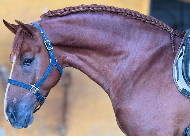 Precious sorrel stallion P.R.E. Barroco with a lot of beauty. He is very noble and has a great capacity to learn. Very good movements. Free of pyro and x-rays available. Location: Barcelona-Transport can be arranged.