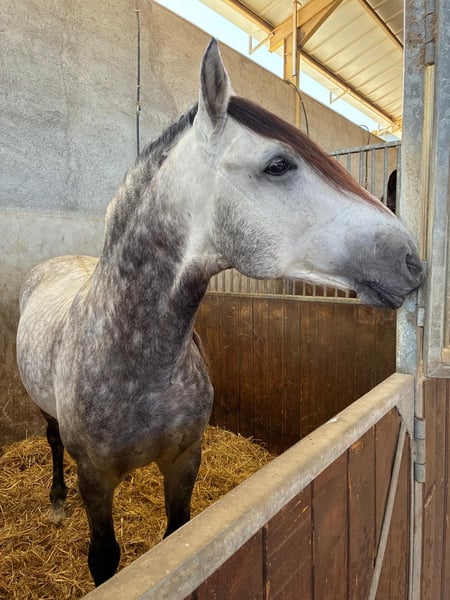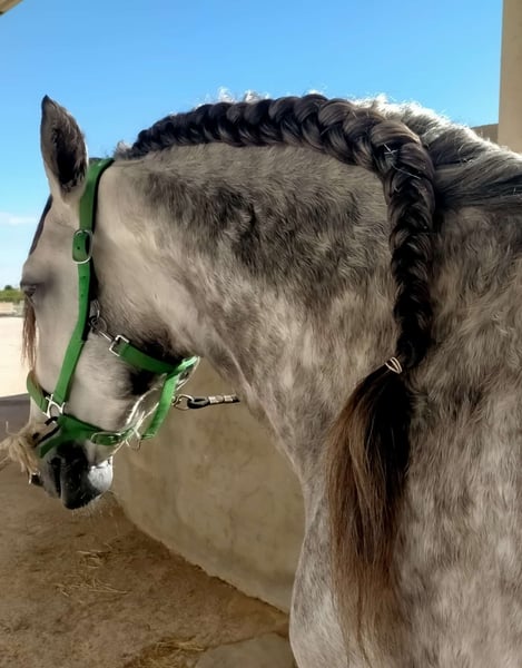 Pura Raza Español – Tordo – 8 años – 162 cm – Entero (no castrado) Se ofrece espectacular caballo PRE tordo de 8 años, con una alzada de 162 cm, entero y con un carácter excepcionalmente noble. Es un caballo muy equilibrado, fácil de manejar y muy sencillo de transportar. Tenemos Transportista de confianza para toda Europa con una larga experiencia. Contamos con todas las placas disponibles y se puede realizar cualquier tipo de chequeo veterinario, siendo los costes de dichos chequeos a cargo del comprador. Además, ofrecemos recogida en el Aeropuerto de Alicante, así como ayuda con el alojamiento para facilitar la visita. Hablamos inglés y alemán para atender a compradores internacionales. Para cualquier duda o información adicional, no dude en contactarme.