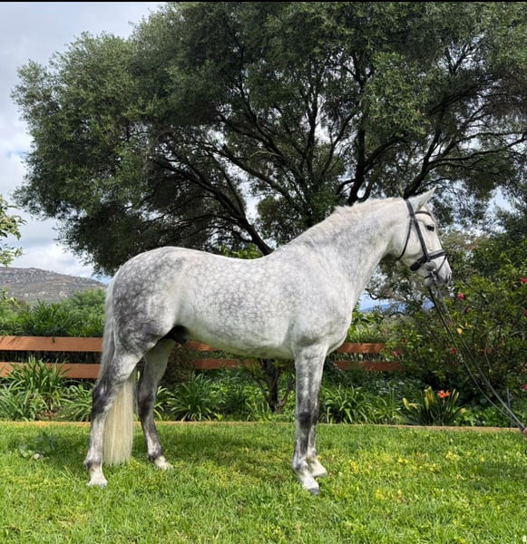 Relamido VI est un cheval très polyvalent, adapté à presque tout type de cavalier souhaitant profiter de la discipline du dressage. Son père, Osado 04, a été l’un de nos meilleurs chevaux dans cette discipline, remportant de nombreuses victoires au niveau Grand Prix, tant au niveau national qu’international. Relamido se distingue par son excellent caractère, qui, associé à une très belle qualité de locomotion, en fait un cheval particulièrement agréable à travailler au quotidien. Il a participé à de nombreuses compétitions dans les épreuves des chevaux de 7 ans ainsi qu’au niveau Saint-Georges, et se prépare actuellement à évoluer vers le niveau Intermédiaire I, en attendant un nouveau cavalier pour poursuivre sa progression. C’est également un cheval très fiable pour les cavaliers recherchant un cheval d’école (schoolmaster), idéal pour apprendre et progresser en dressage. Il est habitué aux sorties en extérieur et montre un comportement très calme et posé. Il convient de noter qu’il peut se montrer légèrement regardant lorsqu’il partage la piste avec des chevaux arrivant en face. Cela n’entraîne toutefois aucun comportement indésirable, mais les acheteurs potentiels doivent garder à l’esprit qu’il s’agit d’un point pouvant être amélioré par le travail.