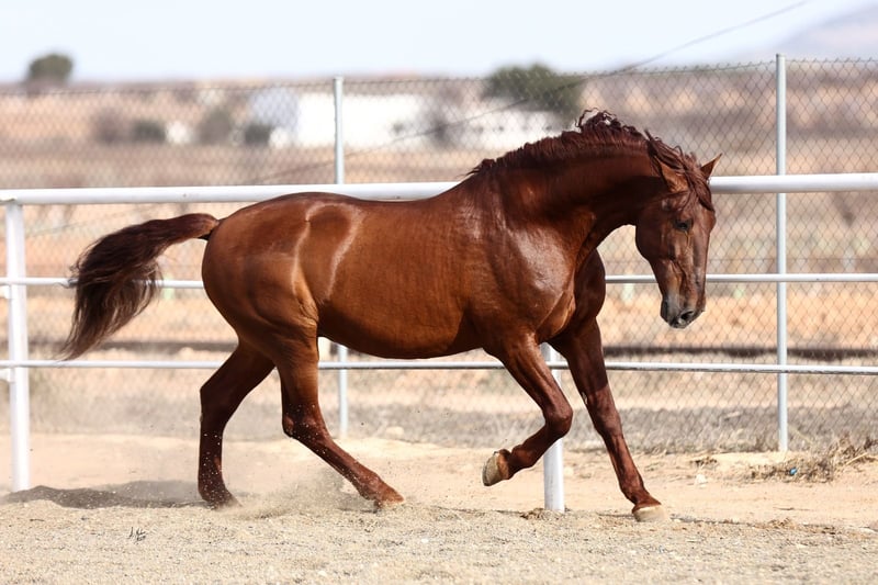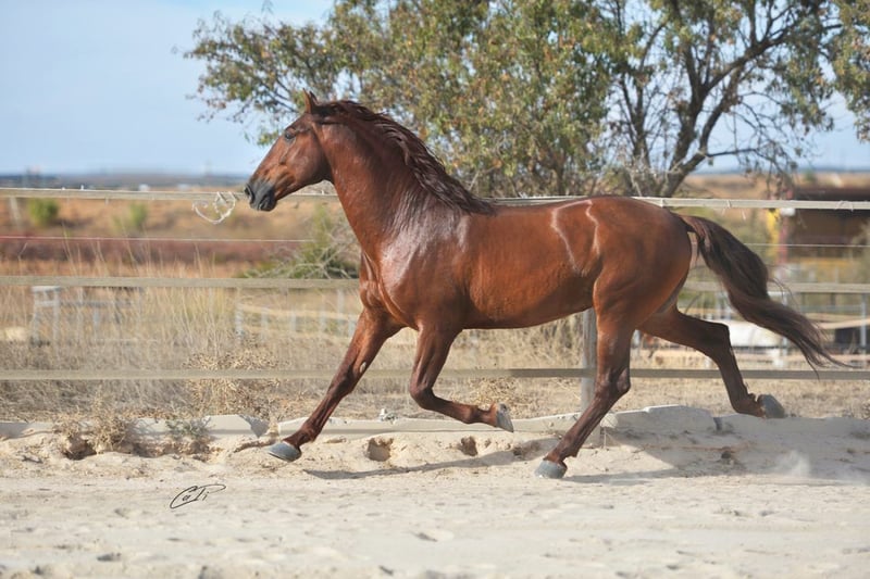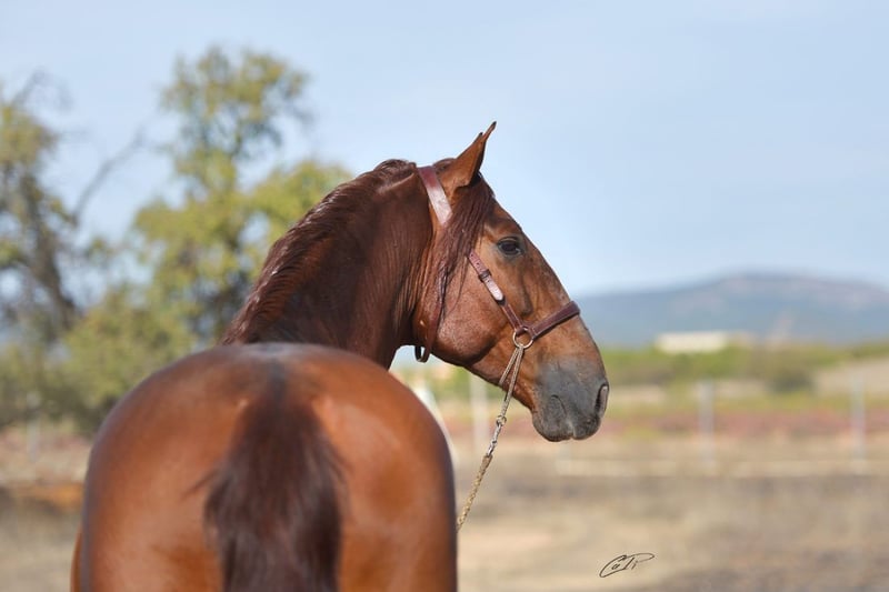 Caprichoso Mango es un extraordinario semental alazán de las mejores líneas de Bohórquez, destacando por su expresión racial, nobleza y gran calidad de movimientos. Nieto del gran Evento, desciende tanto por línea paterna como materna del legendario Albero II, lo que garantiza genética contrastada, funcionalidad y tipicidad en sus descendientes. Ejemplar con una conformación armoniosa, fuerza, elasticidad y excelentes movimientos. Ideal para criadores que buscan mejorar raza, movimientos y nobleza , tanto en Pura Raza Española como en cruzados. Enviamos semen fresco o congelado. No dudes en contactarnos para más información: info@pepeanton.com