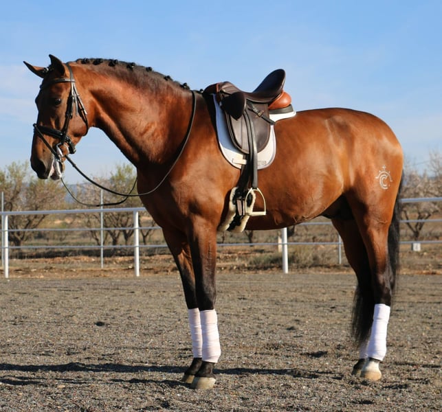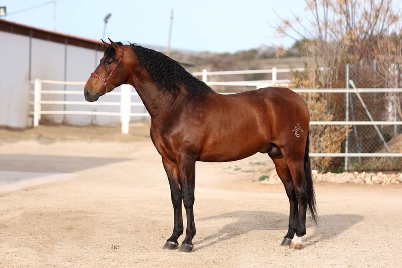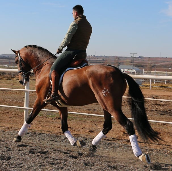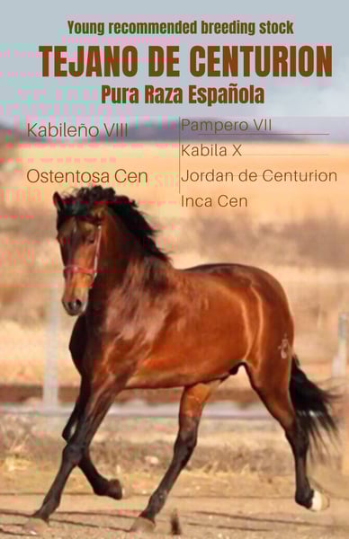 TEJANO DE CENTURIÓN es hijo de KABILEÑO XIII (Élite) y por la línea materna es nieto de JORDAN DE CENTURION (Élite) por Rondeño IX y Lebrijano III — líneas que garantizan calidad y un gran potencial para la doma clásica. Ha sido reconocido por ANCCE como JOVEN REPRODUCTOR RECOMENDADO para la DOMA CLÁSICA. Con sus 1,72 m, TEJANO es un caballo elegante que no solo destaca por su excepcional genealogía, sino también por sus impresionantes movimientos, llenos de elasticidad, amplitud y expresión. En resumen, TEJANO es la elección perfecta para la cría de caballos de doma clásica de alto nivel, tanto en Pura Raza Española como en cruzados. Enviamos semen fresco o congelado. No dudes en contactarnos para más información: info@pepeanton.com